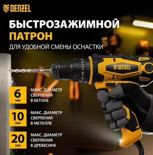 Дрель-шуруповерт сетевая ударная ISD-300-13 Denzel 26211 интересное: