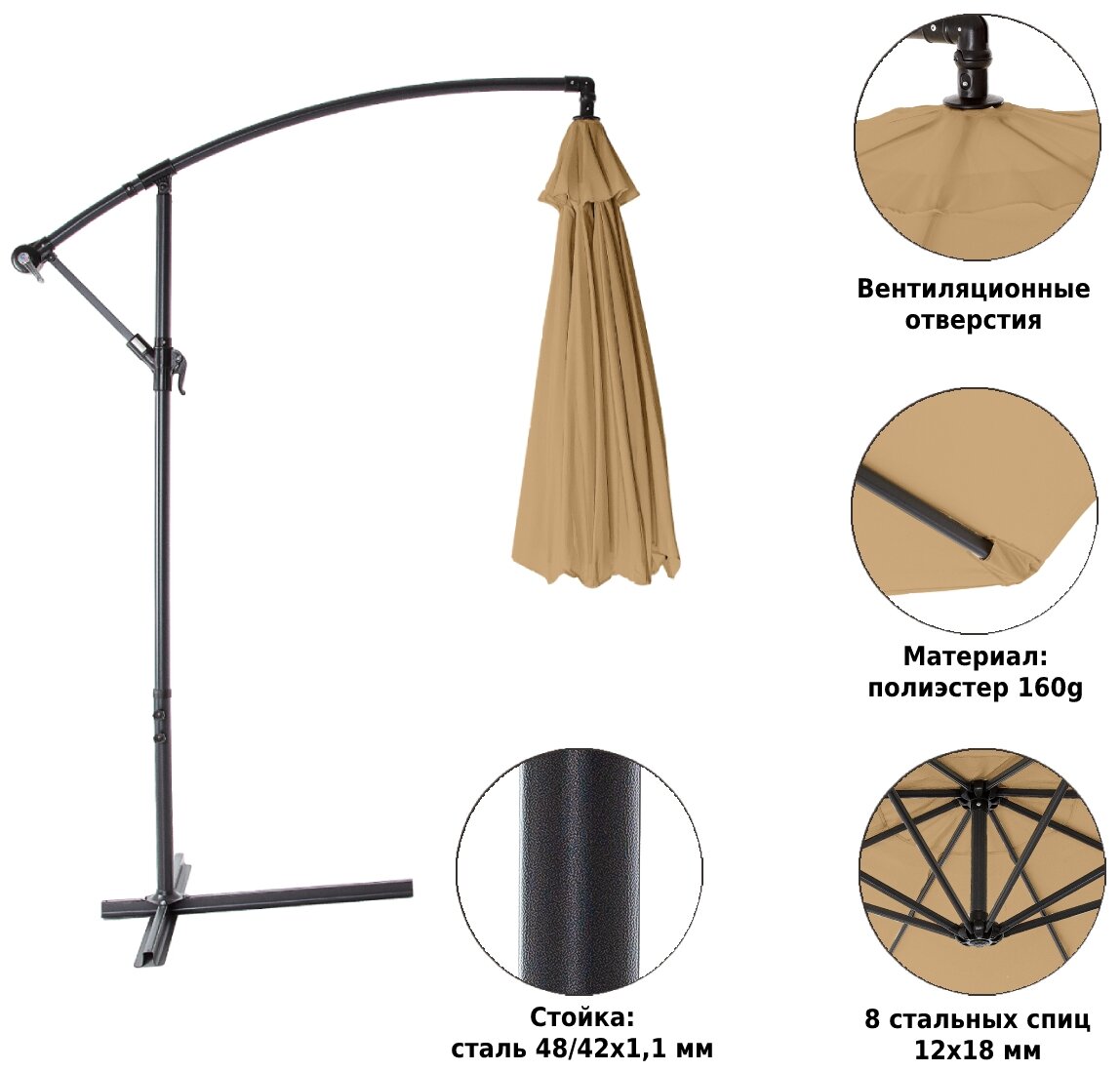Садовый зонт Green Glade 3 м светло-коричневый, арт. 8003 интересное:
