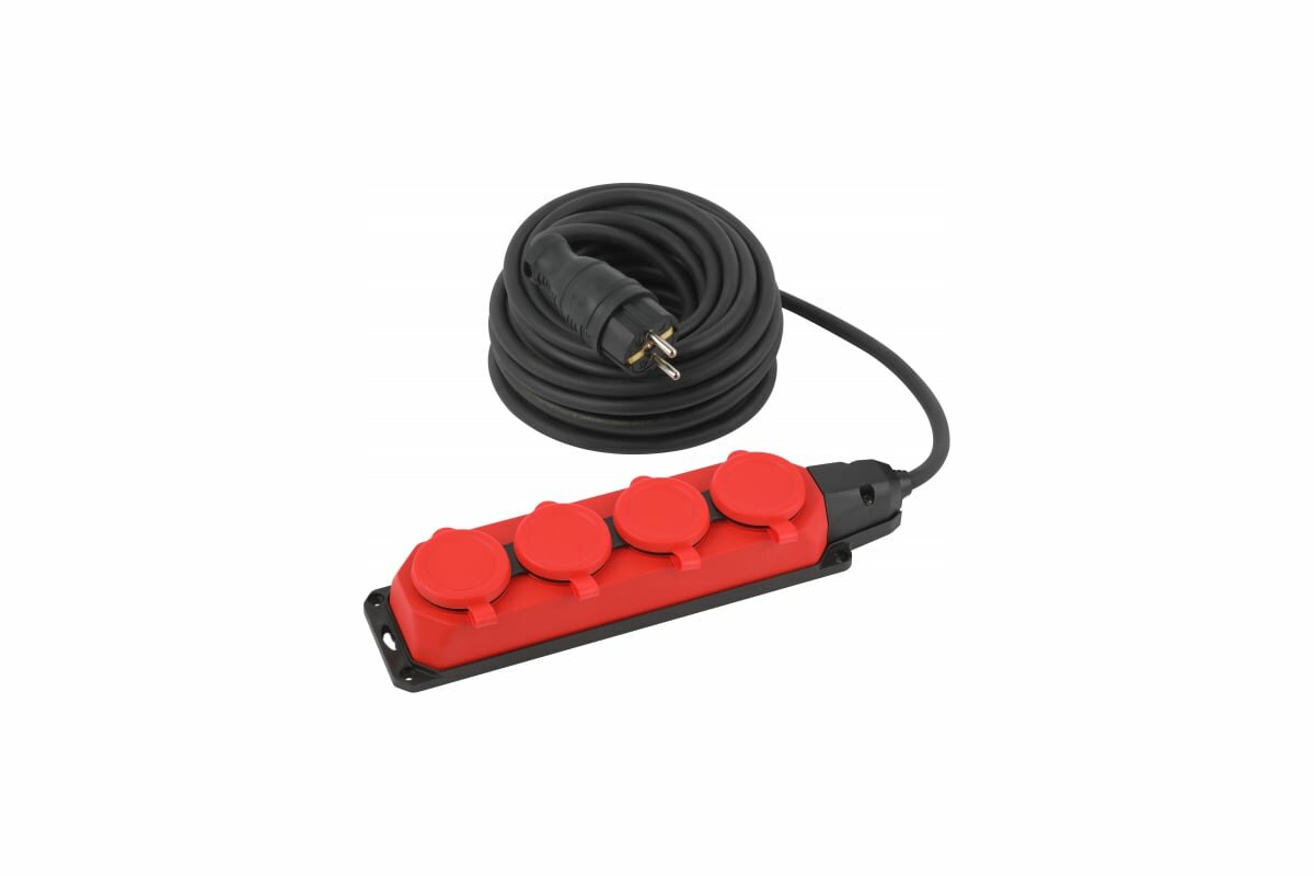 ЭРА Удлинитель силовой UK4e3x1,530mIP44(KG) с заземлением 4 розетки каучук 30м КГ 3x1,5мм2 IP44 Б0057588