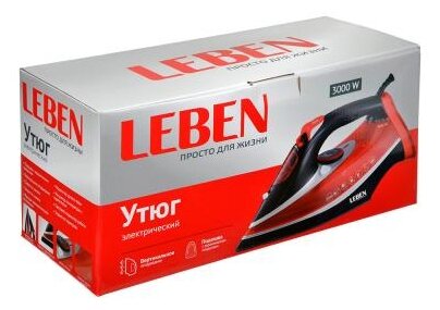 Утюг LEBEN 3000 Вт, подошва керамика, красный/черный 249-012