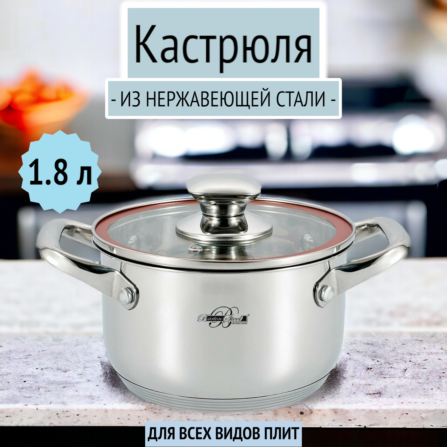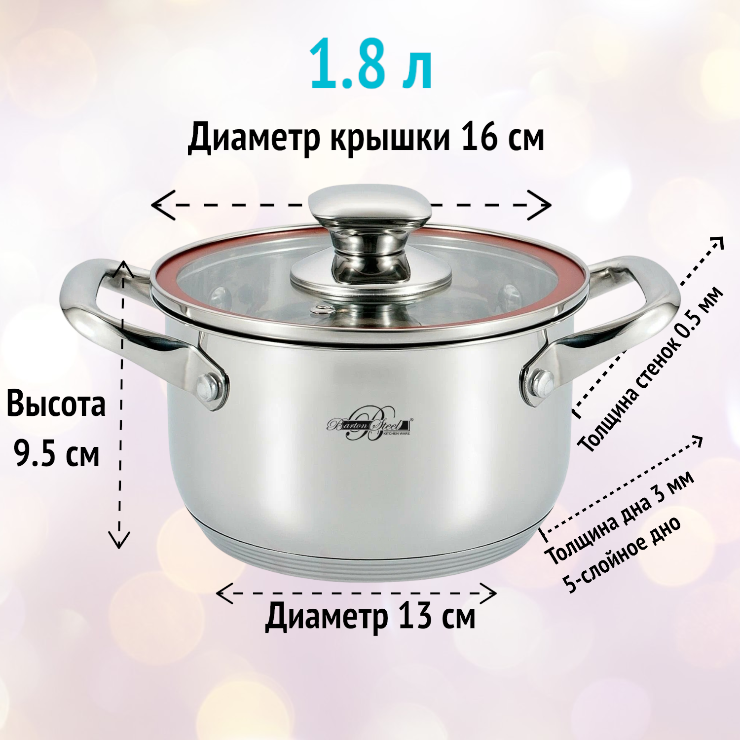 СохранитьКастрюля 1.8 л из нержавеющей стали для индукции, Barton Steel BS 2900-16 интересное: