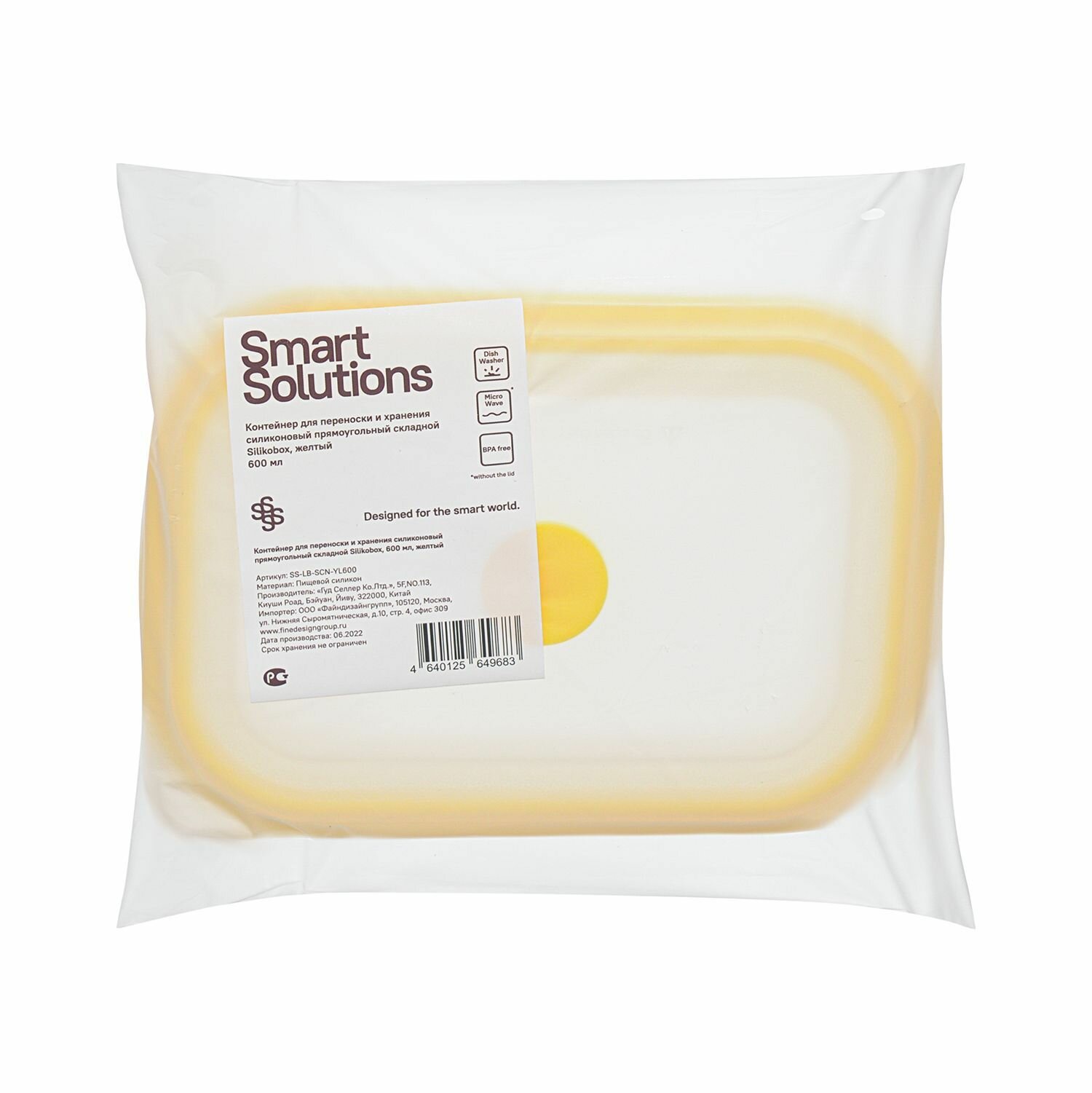 Контейнер для переноски и хранения Smart Solutions Silikobox силиконовый, прямоугольный, складной, 600 мл, желтый SS-LB-SCN-YL600
