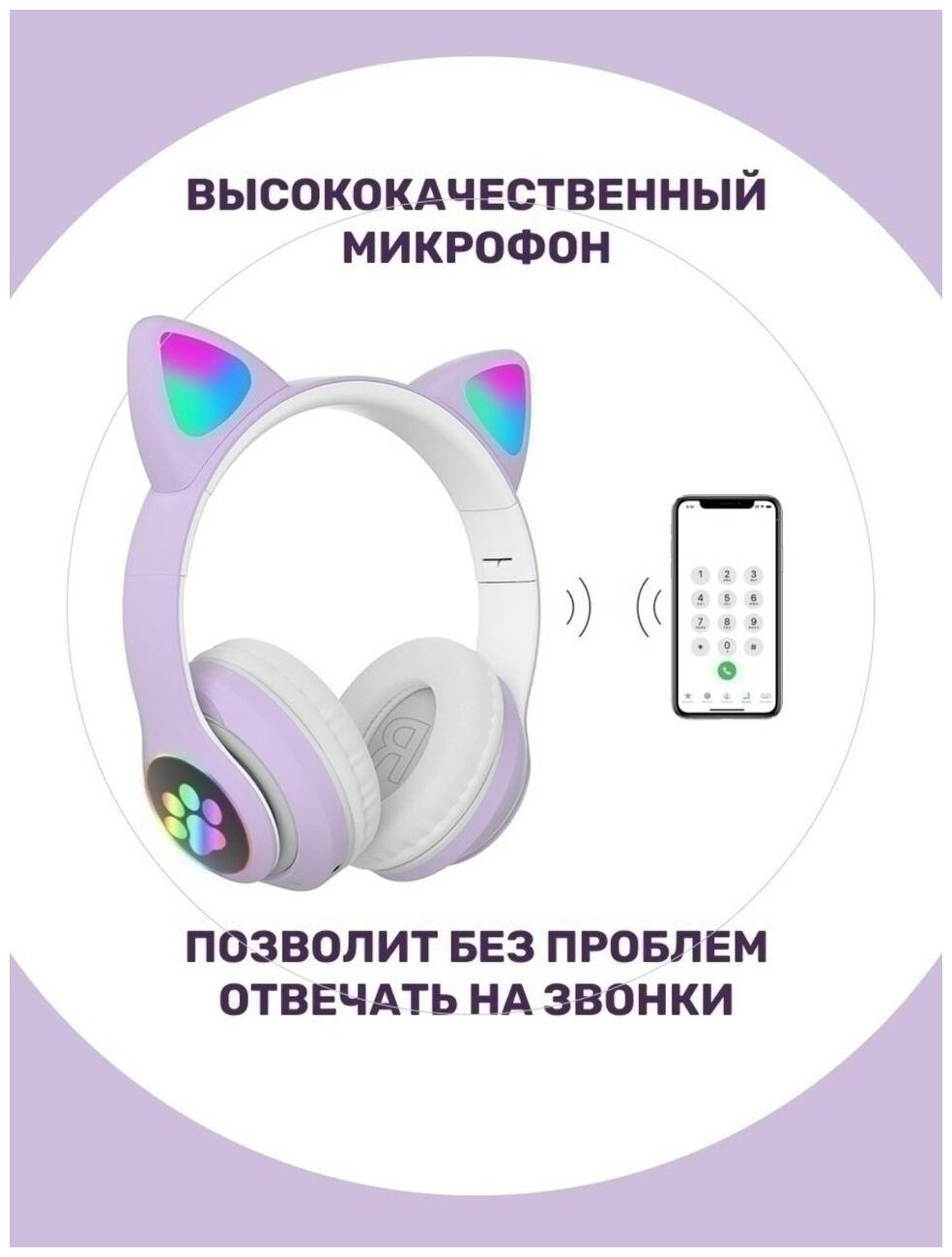 СохранитьНаушники беспроводные светящиеся с ушками STN-28, фиолетовые интересное: