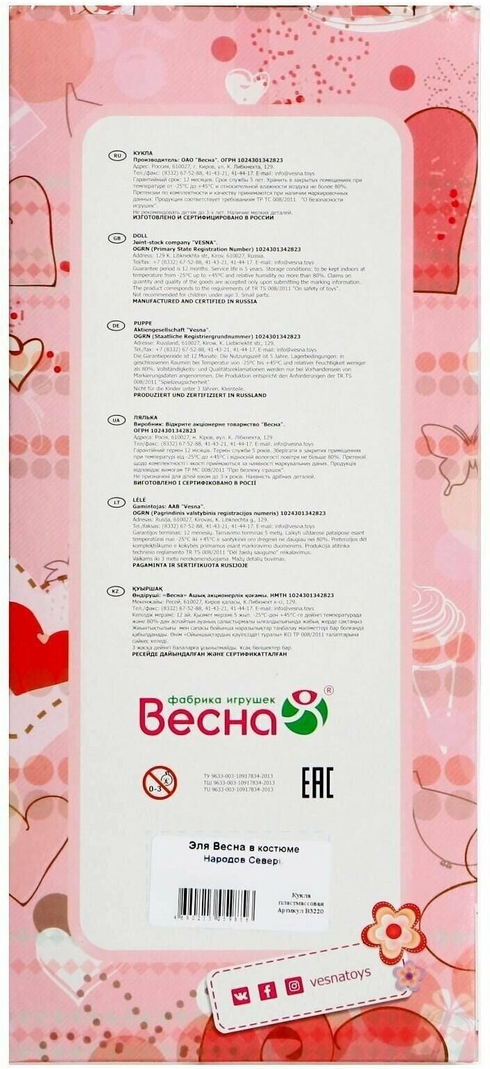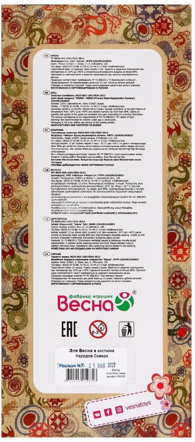 СохранитьКукла Эля в костюме народов Севера (30, 5см) В3220, (Весна) () интересное: