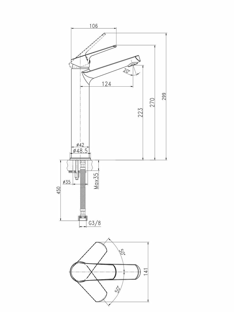 Смеситель для раковины высокий FLAVIS однорычажный (A63038)