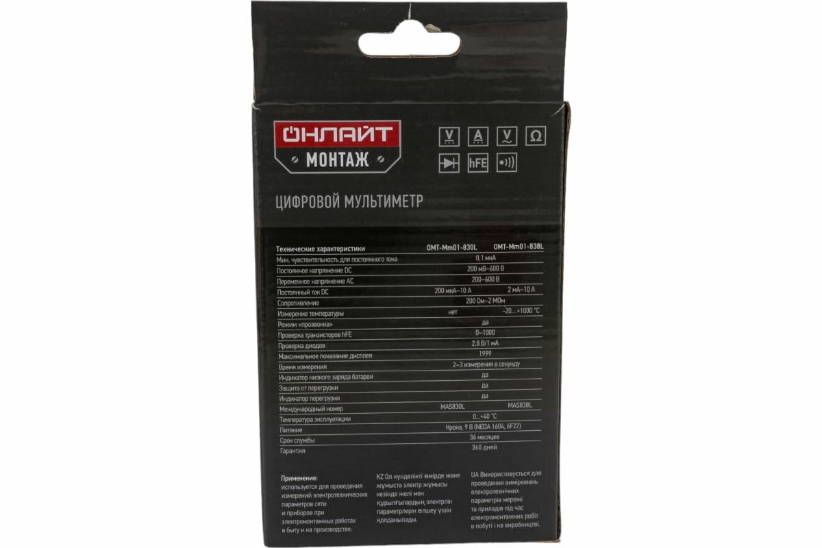 | Дополнительная информация | Мультиметр онлайт 90 080 ОMT-Mm01-830L (830L) |