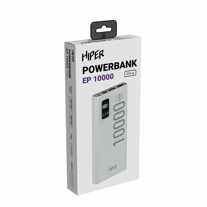 Мобильный аккумулятор Hiper EP 10000mAh QC/PD 22.5W 5A 2xUSB-A/USB-C белый (EP 10000 WHITE)