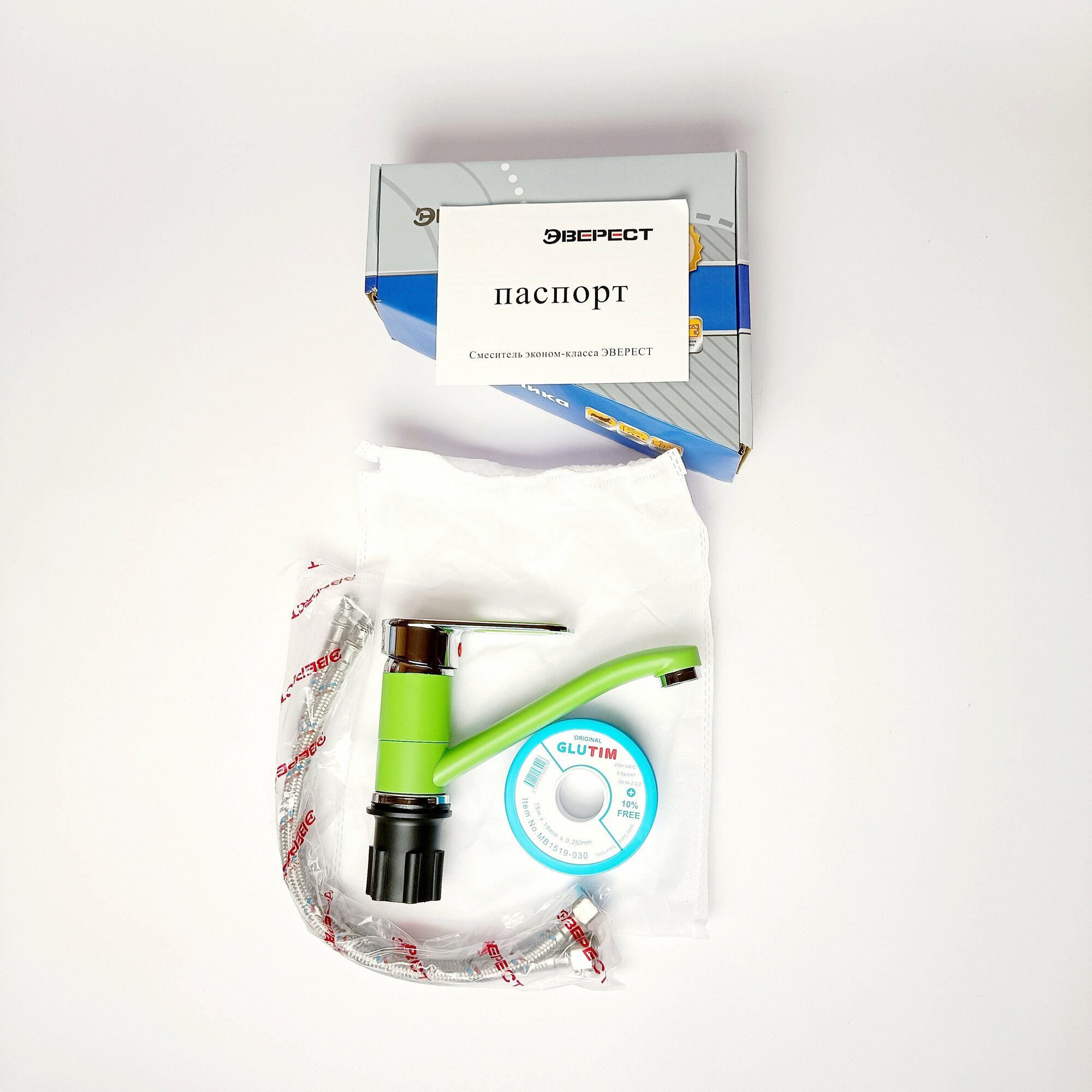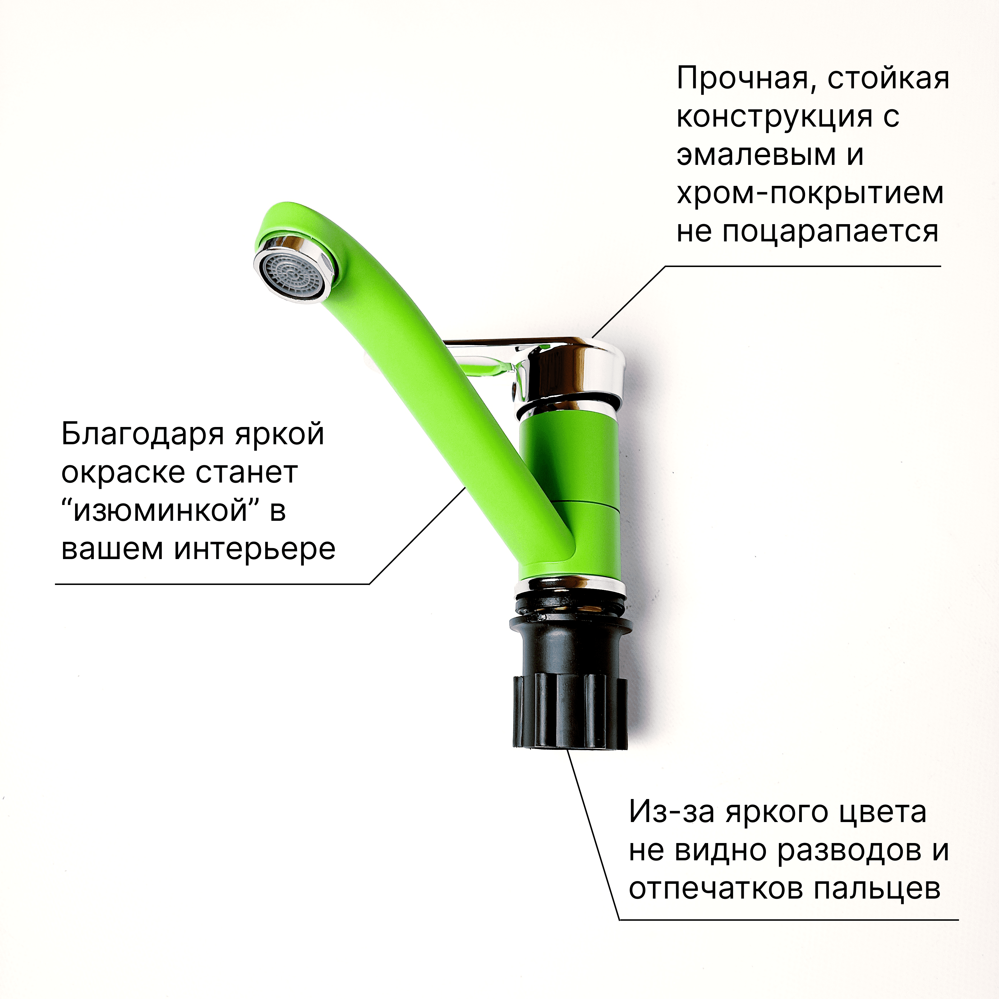 Смеситель эверест для кухни с коротким изливом, зелёный,