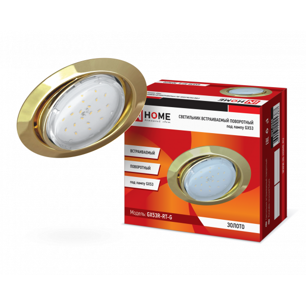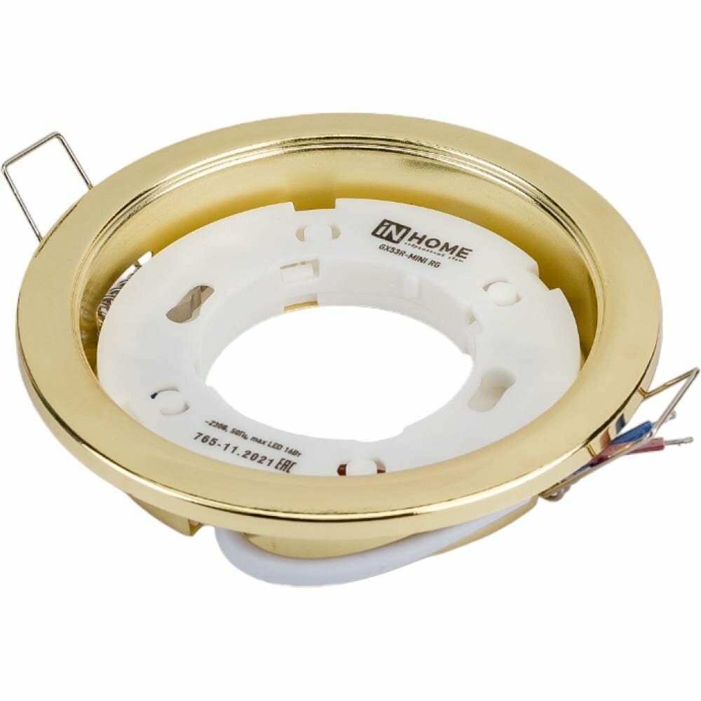 Светильник точечный GX53R-mini RG GX53 230В ультратонкий встраив. метал. зол. IN HOME 4690612008462