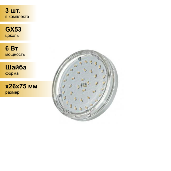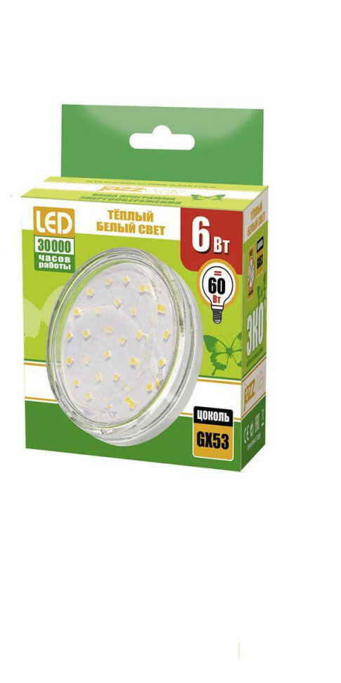 Лампа светодиодная 6 Вт GX53 3000К 510Лм прозрачная 220В таблетка PLED- ECO теплый .285197 .2851970 JazzWay интересное: