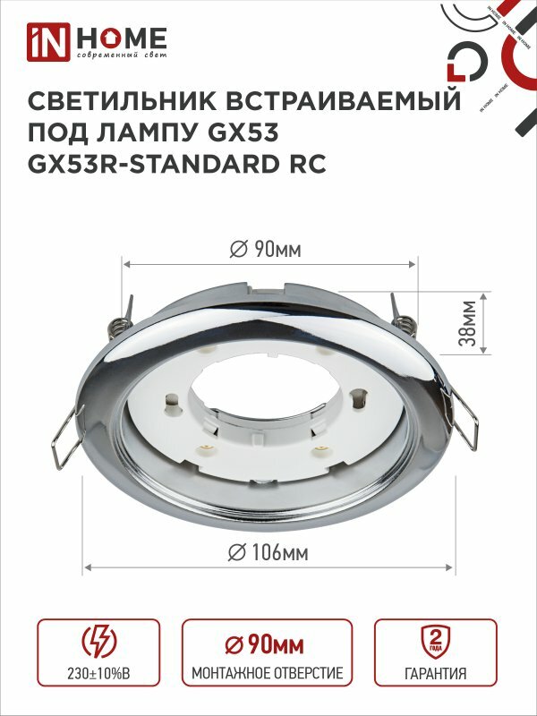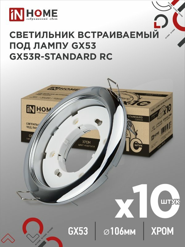 Светильник встраиваемый GX53R-standard RC-10PACK металл под лампу GX53 230В хром (уп.10шт), IN HOME 4690612036304 (1 упак)
