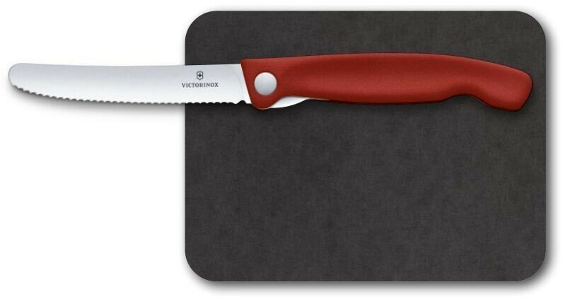Купить Набор VICTORINOX Swiss Classic: складной нож для овощей 11 см с волнистой заточкой лезвия и разделочная доска, нержавеющая сталь / полипропилен / древесное волокно, красная рукоять (6.7191.F1)