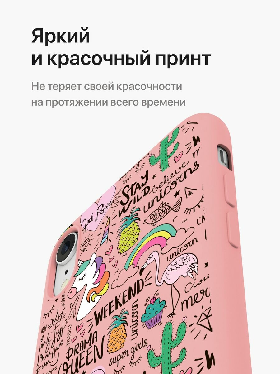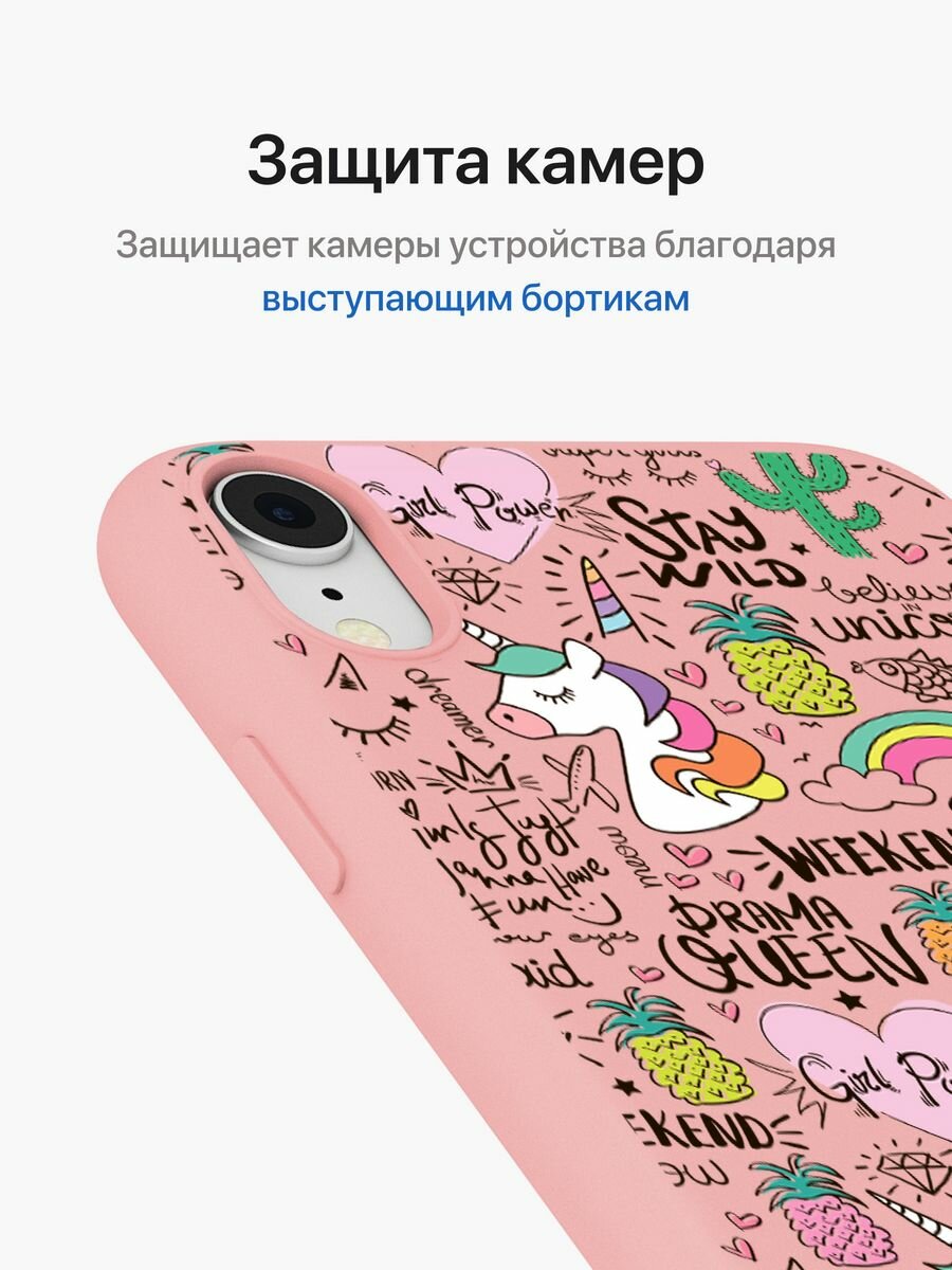 СохранитьСиликоновый чехол для iPhone XR / Айфон XR бампер розовый с рисунком "Unicorn pattern" интересное: