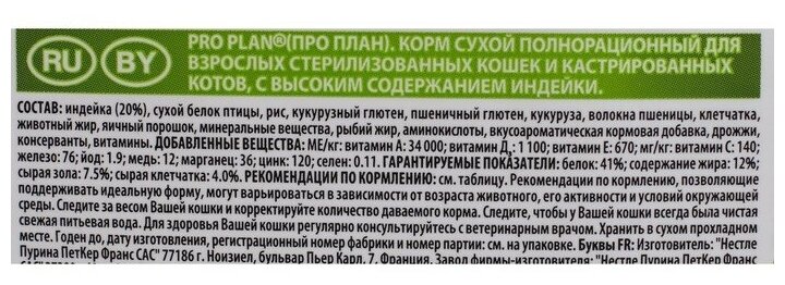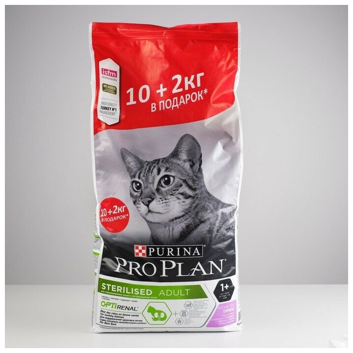 PRO PLAN корм для стерилизованных кошек с индейкой, 12 кг (10+2 кг)