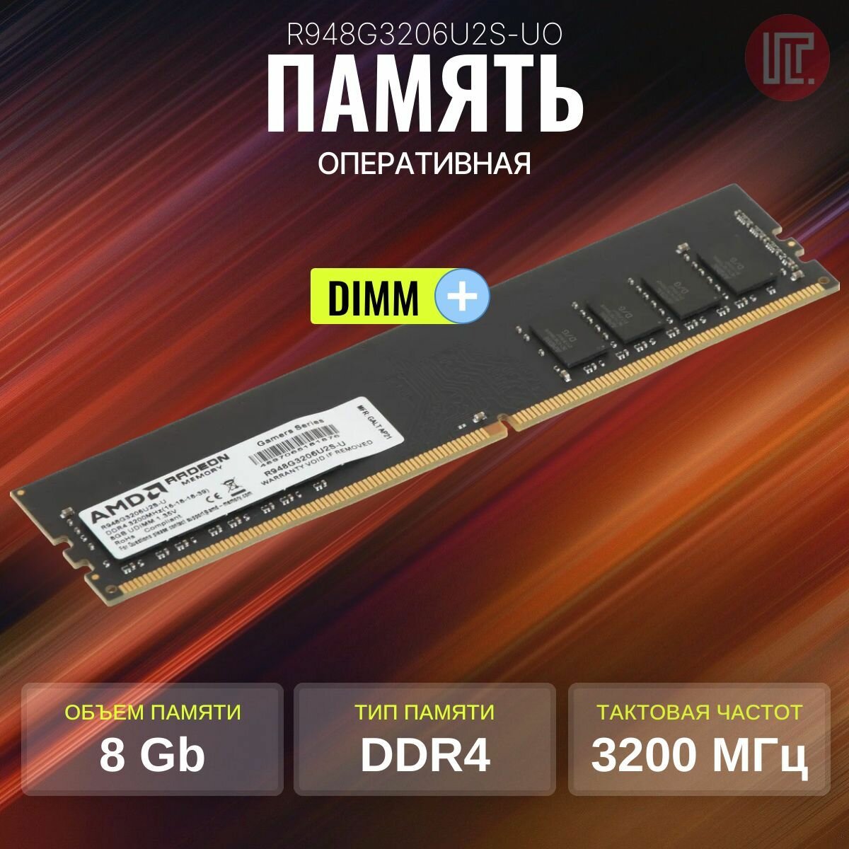 Amd Модуль памяти DDR4 DIMM 8GB R948G3206U2S-UO PC4-25600, 3200MHz R9 Gamers Series Black интересное: