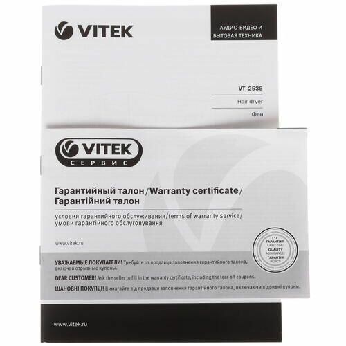 Ниже Вы можете прочитать отзывы на Фен Vitek VT-2535 ., ознакомится с подробными характеристиками, посмотреть интересные обзоры и фотографии на Фен Vitek VT-2535 ..