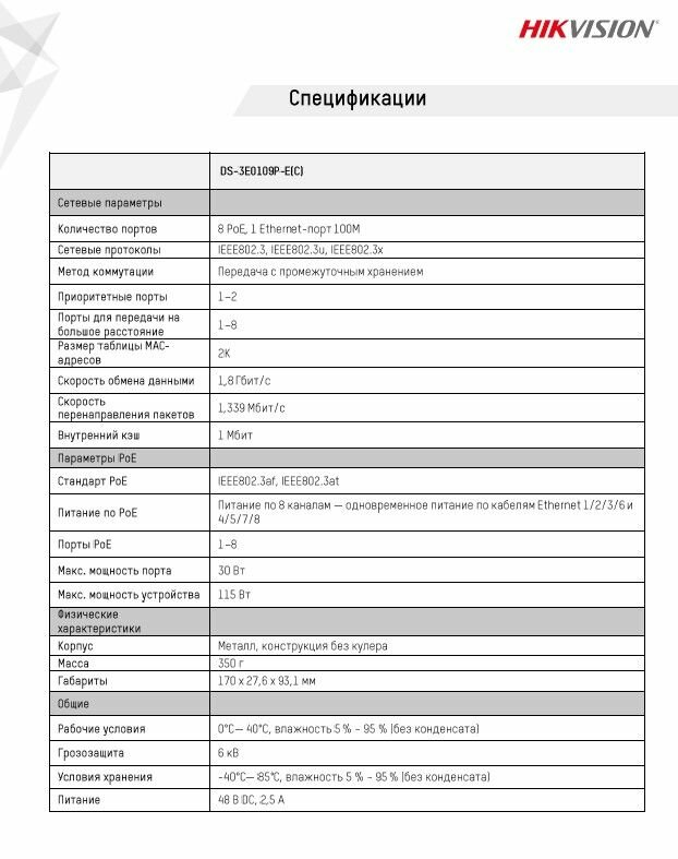 СохранитьНеуправляемый PoE коммутатор HikVision DS-3E0109P-E(C) 8 портов интересное: