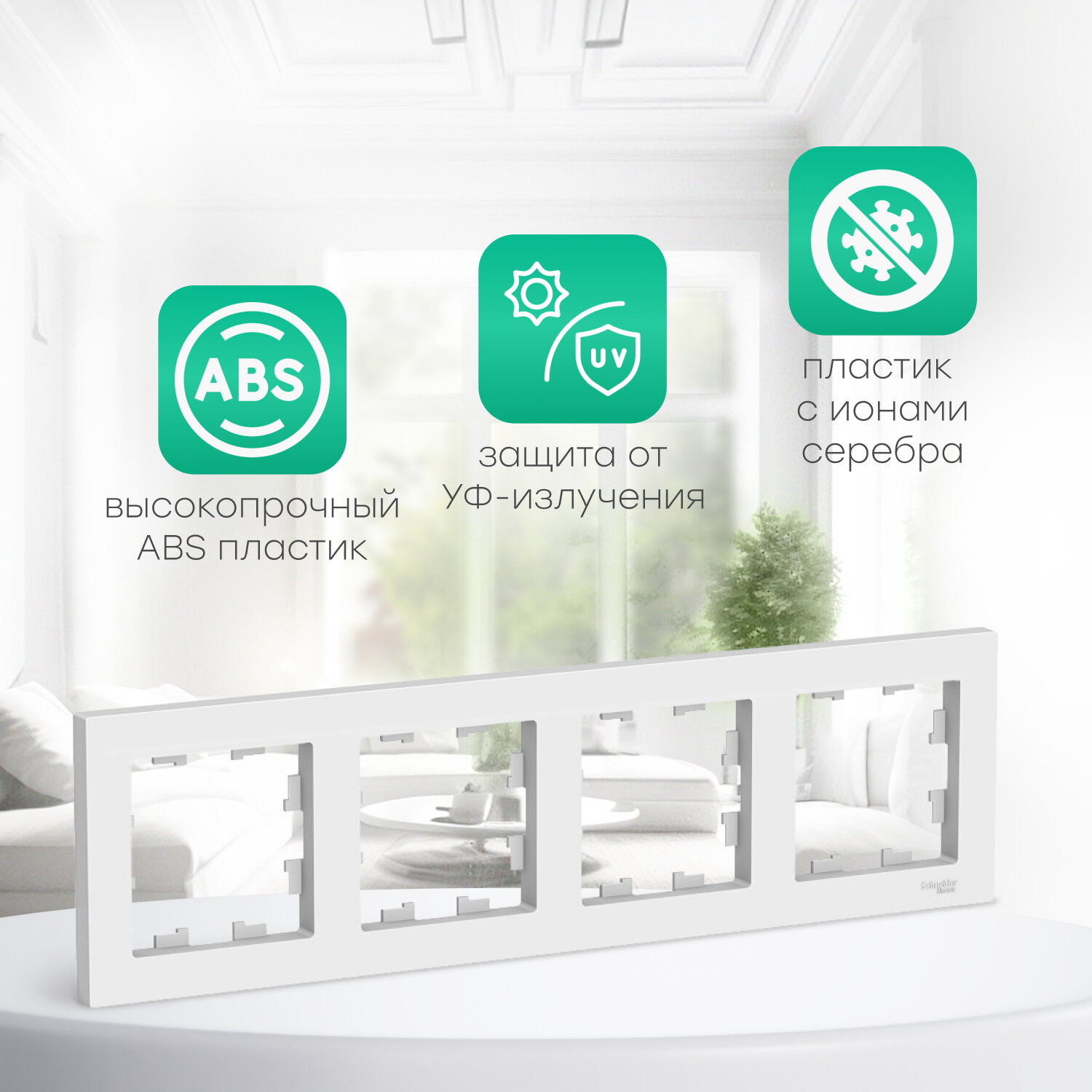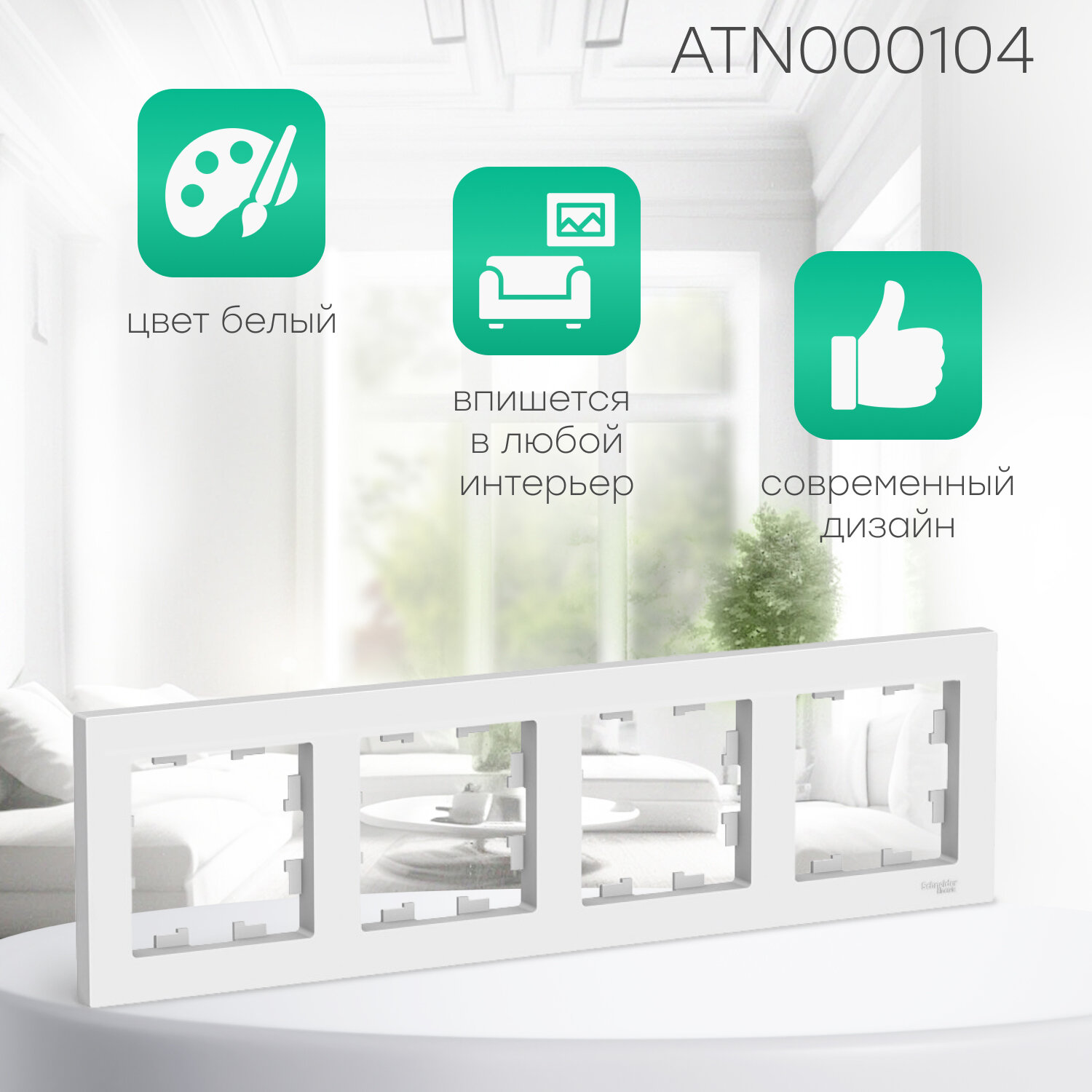 СохранитьРамка 4-постовая универсальная Systeme Electric AtlasDesign, белая ATN000104/5, 5 шт. интересное: