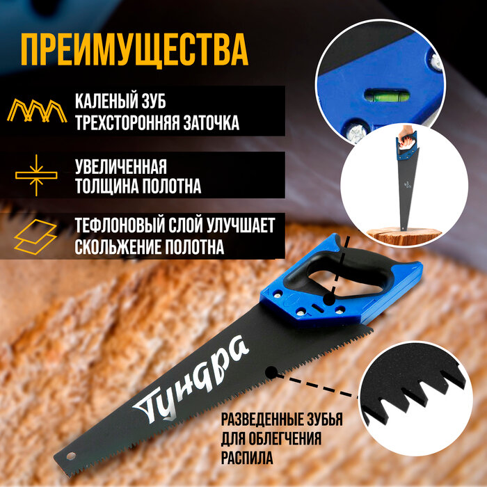 Ножовка по дереву тундра, 2К рукоятка, тефлоновое покрытие, 3D заточка, 7-8 TPI, 350 мм./В упаковке шт: 1 интересное: