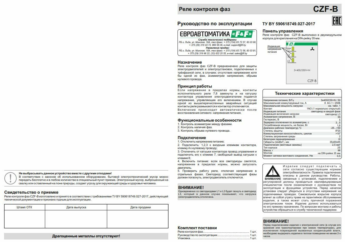 Ниже Вы можете прочитать отзывы на Реле контроля фаз F&F CZF-B 2 А 230 В, ознакомится с подробными характеристиками, посмотреть интересные обзоры и фотографии на Реле контроля фаз F&F CZF-B 2 А 230 В.
