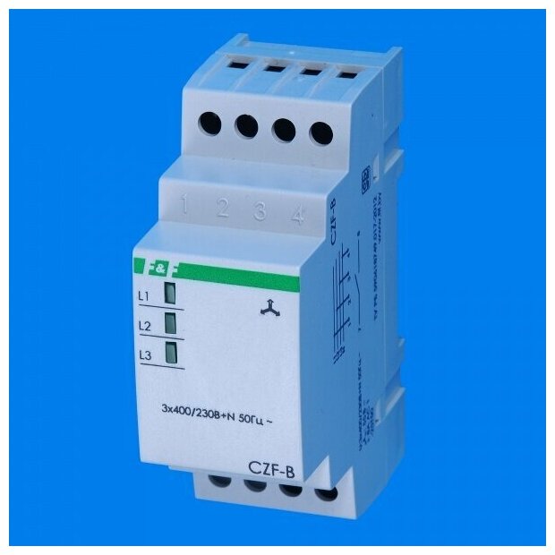 Реле контроля фаз Czf-b (3х400/230+N 8А 1перекл. IP20 монтаж на DIN-рейке) F&F EA04.001.002 EA04.001