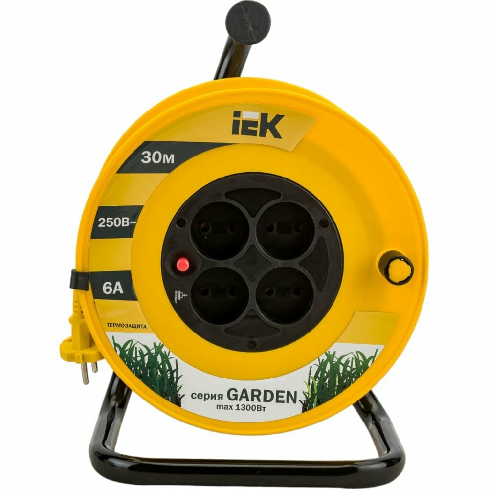 Удлинитель на катушке IEK Garden УК30, 4 розетки, с т/з, без заземления, 2 x 0,75 мм², 30 м