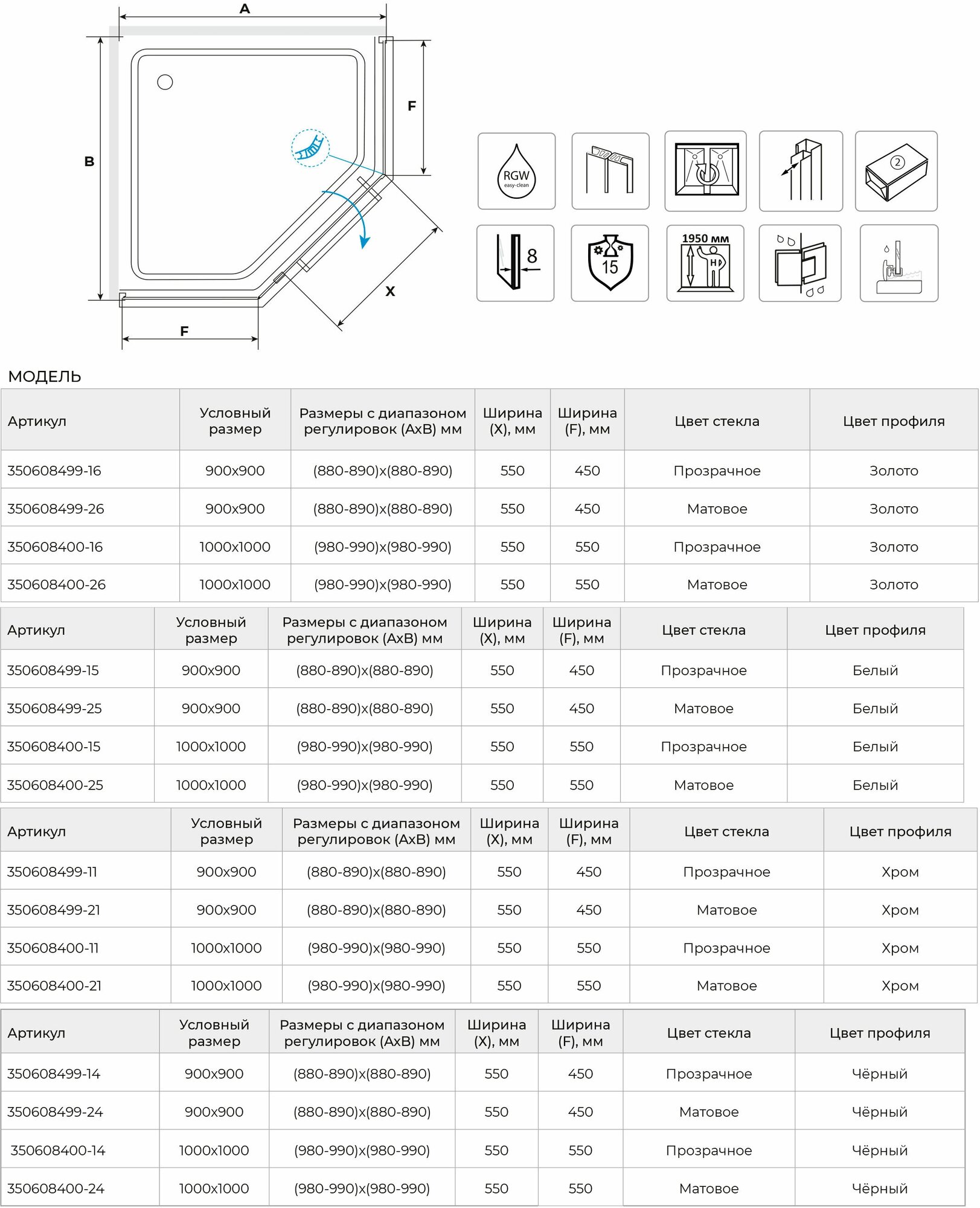 Душевой уголок RGW Hotel HO-084G 1950х900х900 золотой 350608499-16 интересное: