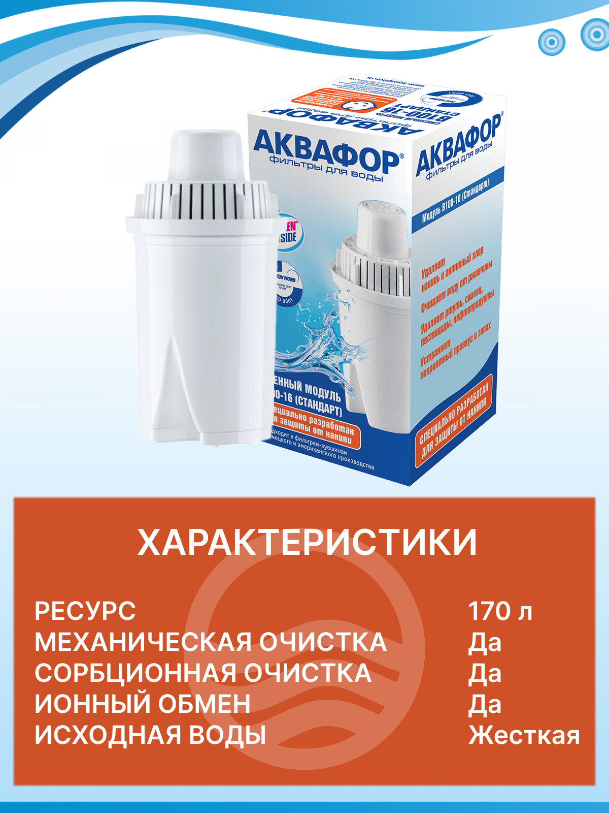 Сменная кассета к кувшинам АКВАФОР В16 (В100-16) для жесткой воды