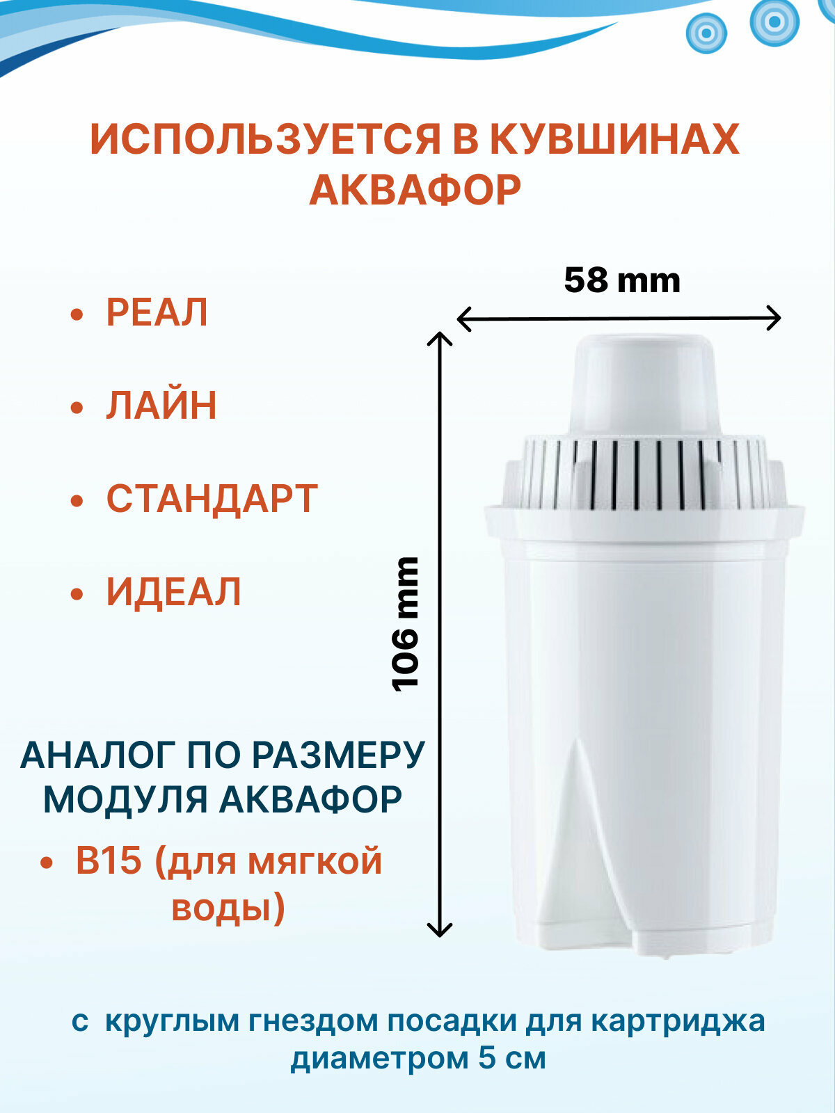 | Дополнительная информация | для очистки воды с жесткостью до 4 мэкв/л; подходит для кувшинов Реал, Стандарт, Лайн и Идеал |