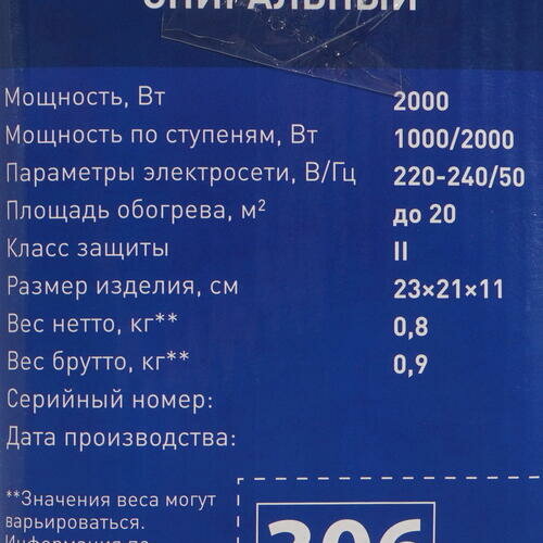 | Подробная комплектация | Тепловентилятор, инструкция, индивидуальная упаковка. |