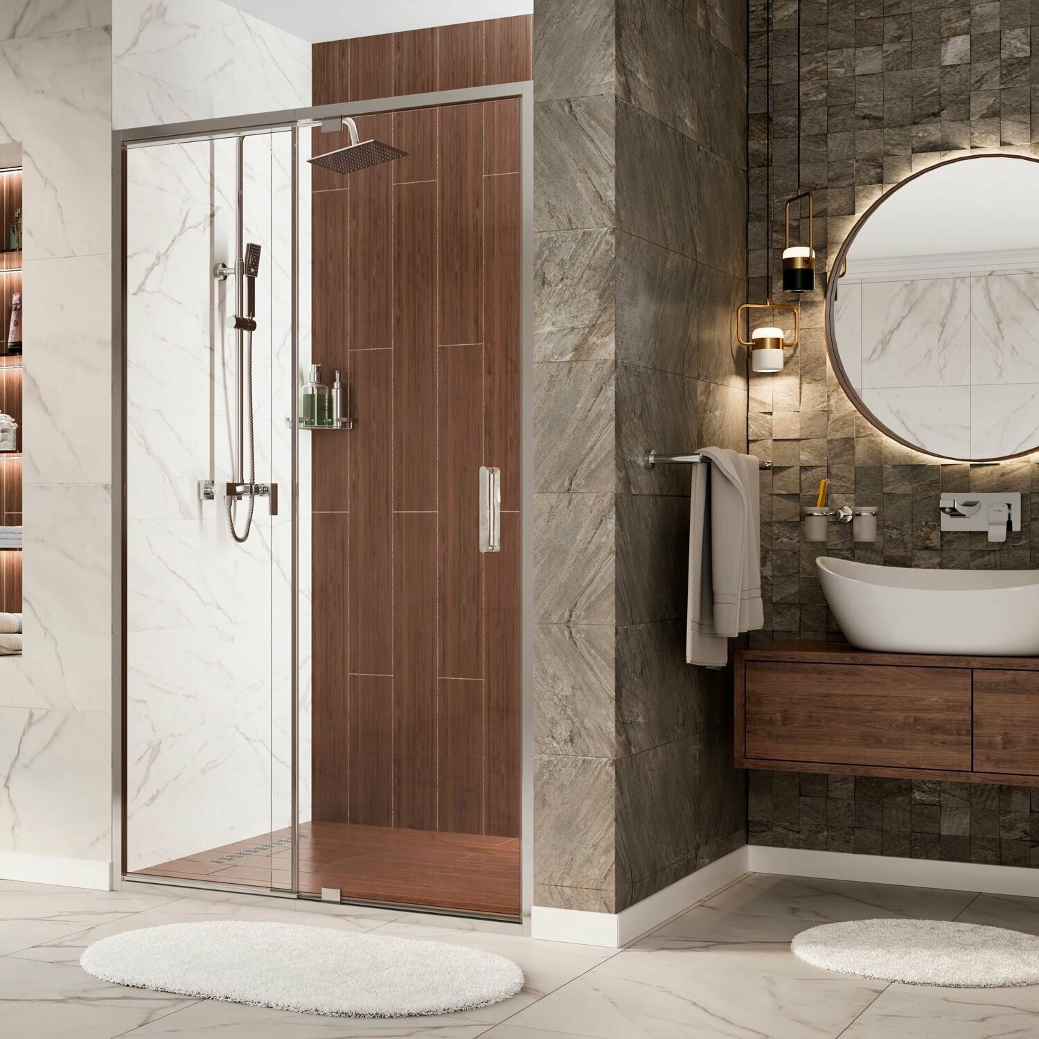 | Плюсы: | Переменная ширина позволяет смонтировать ее в нестандартные габариты душевой |