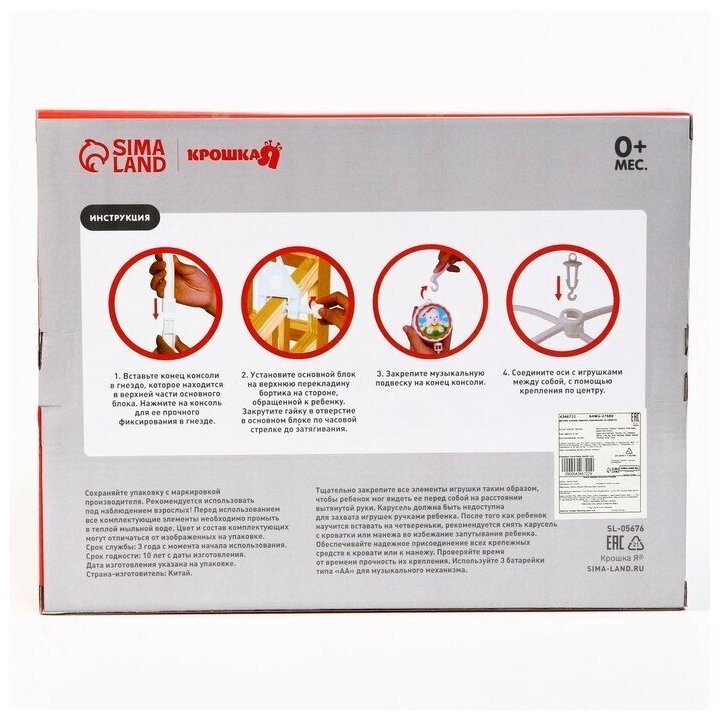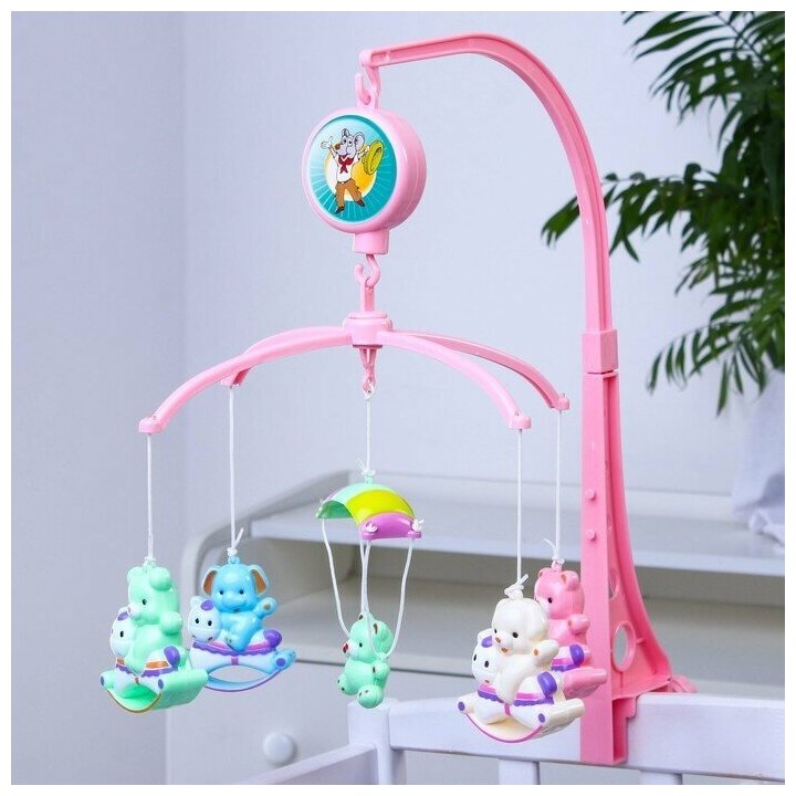 Купить Мобиль музыкальный "Зверюшки на качалке", заводной, наклейка микс