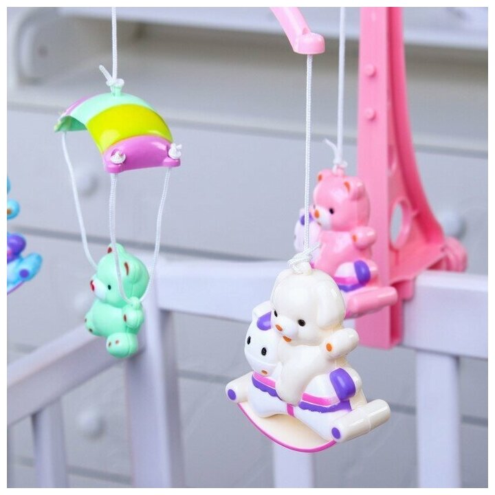 Мобиль музыкальный Зверюшки на качалке, заводной, наклейка микс 4346722 .