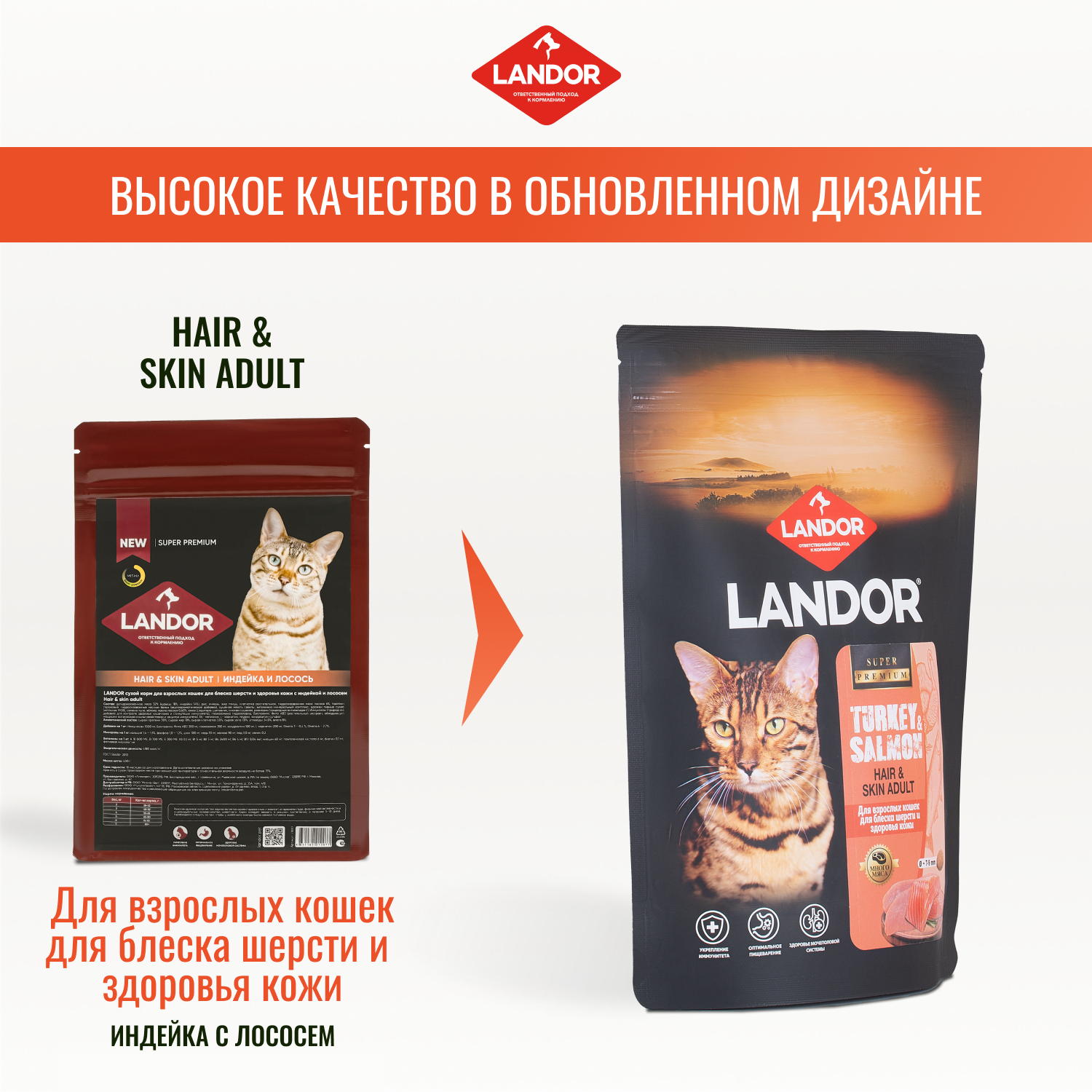 LANDOR CAT ADULT HAIR & SKIN для взрослых кошек для кожи и шерсти с индейкой и лососем (2 кг)