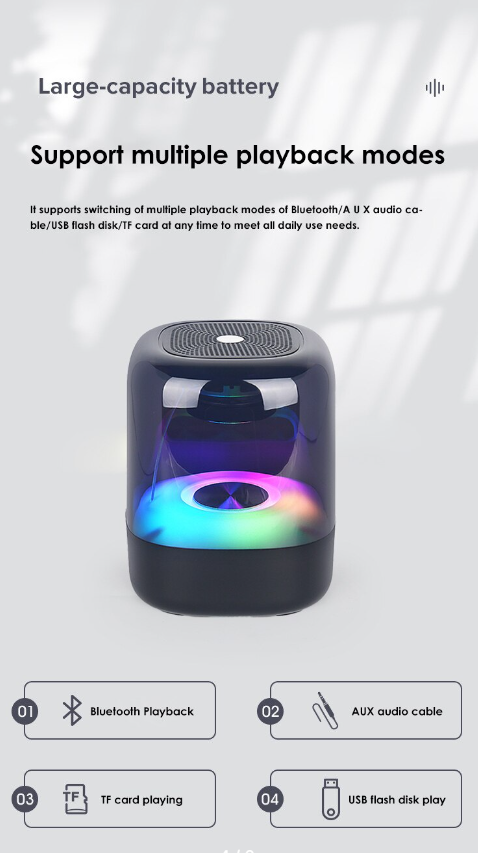 Портативная беспроводная колонка KIMISO / RGB light подсветка/ Bluetooth колонка