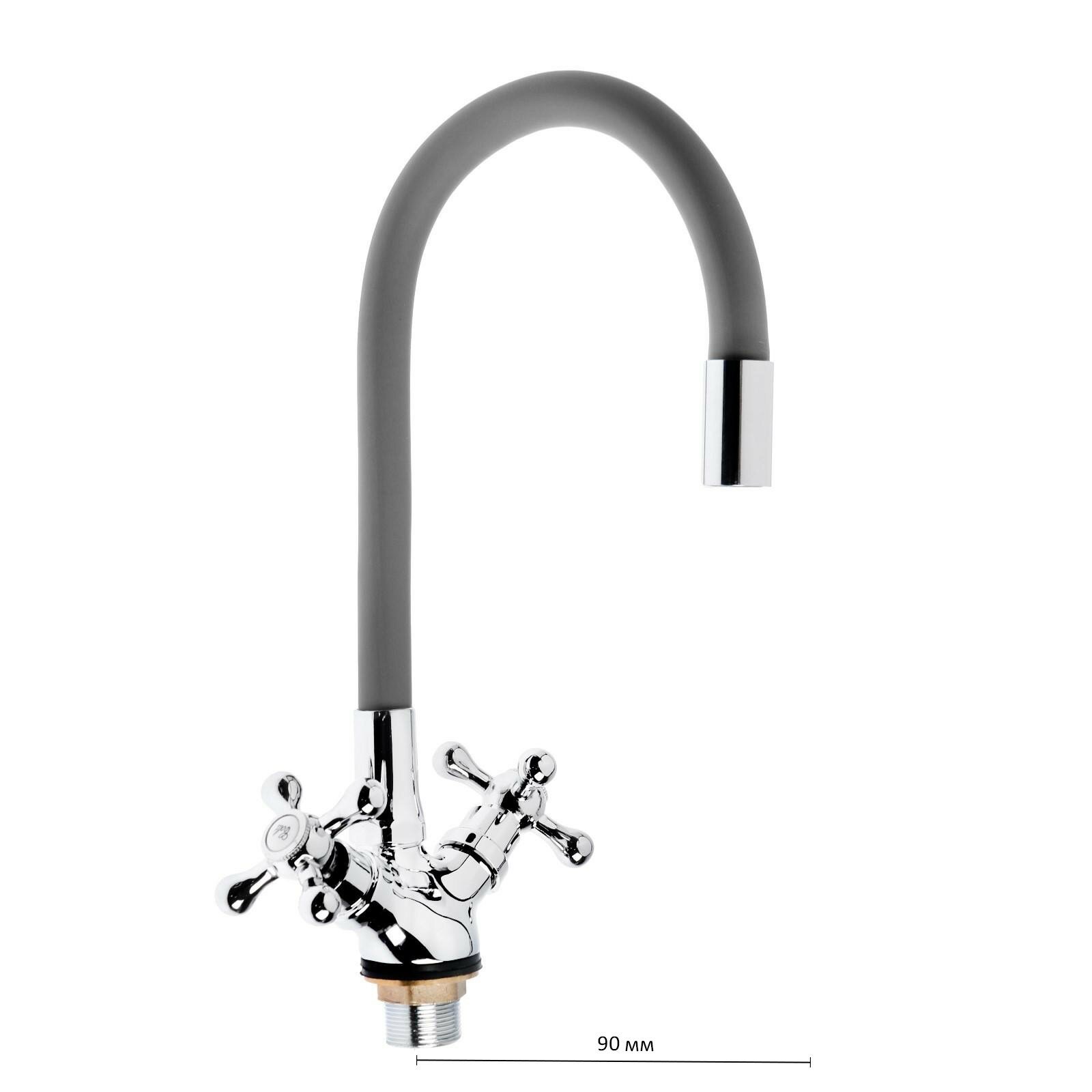 Cмеситель для кухни ZEIN Z2108, двухвентильный, силиконовый излив, силумин, серый/хром 5478288