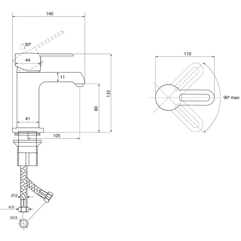 Смеситель для раковины-умывальника D-lin H110315-L из нержавеющей стали