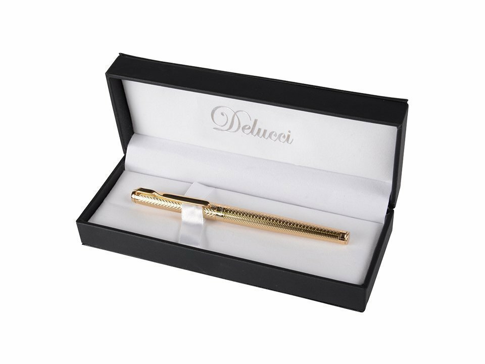 Ручка-роллер Delucci синяя, 0,6мм, корпус золото, подар. уп., 1 шт