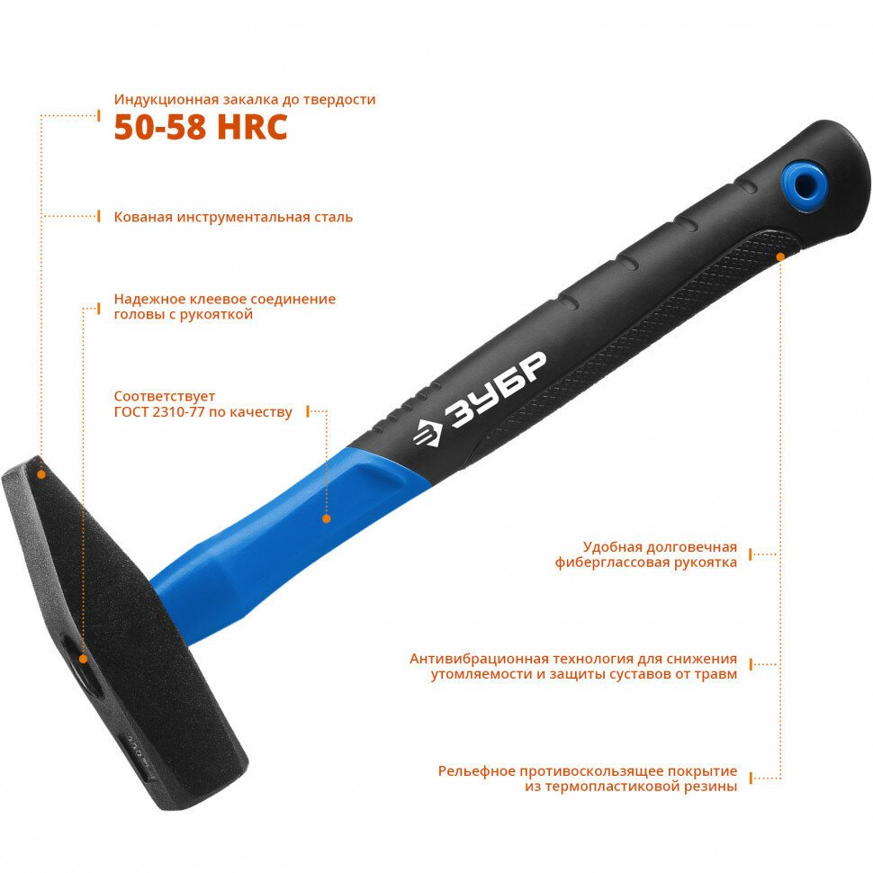 ЗУБР Фибергласс 600 г молоток слесарный с фиберглассовой рукояткой