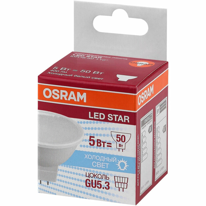 Лампа светодиодная OSRAM LED Star MR16, софит, 400лм, 5Вт, 4000К, нейтральный свет, Цоколь GU5.3, колба MR16