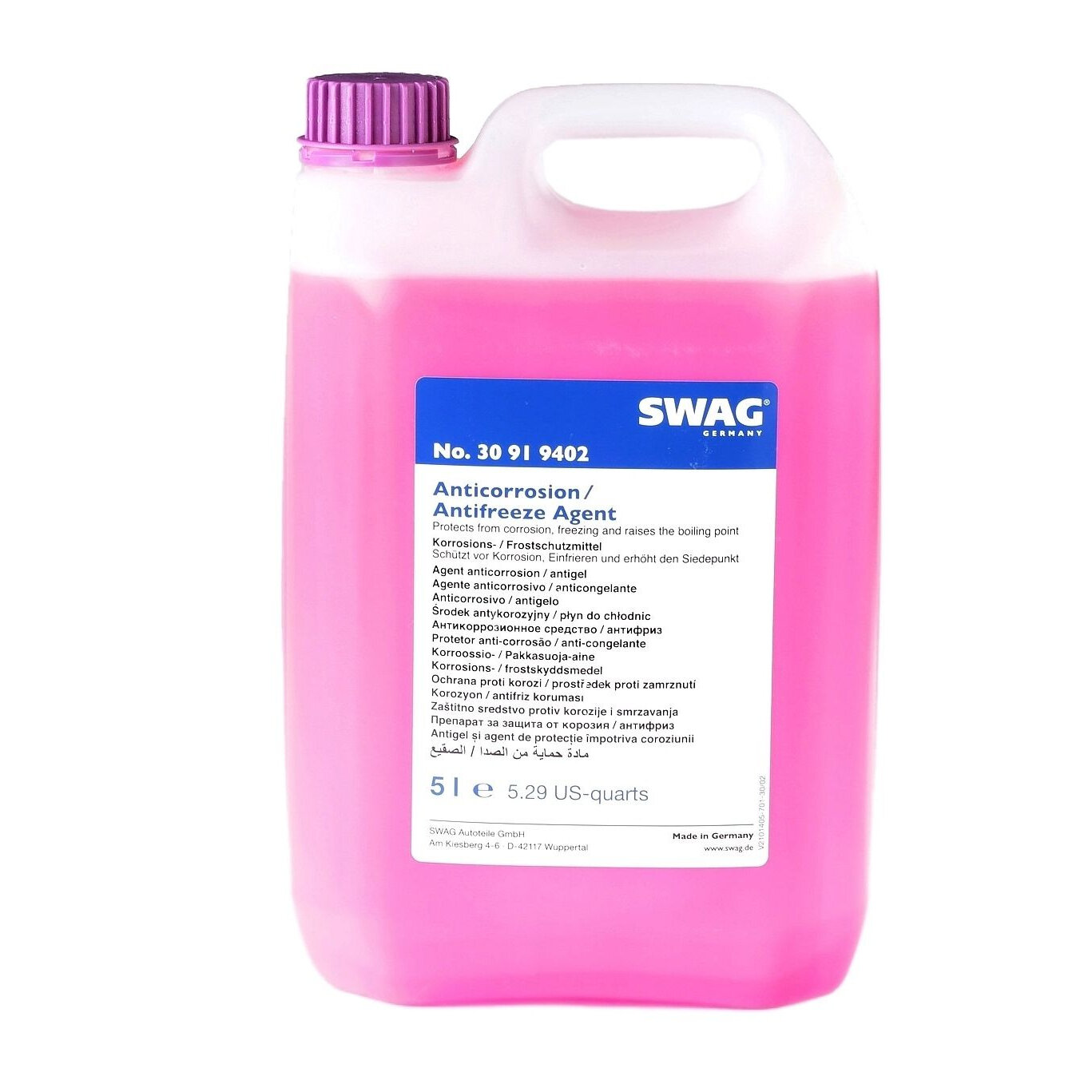 SWAG 30919402 Антифриз (концентрат) 5л, фиолетовый, G12+, Ford WSS-M97B44-D, MAN 324 SNF, MB 325.3, VW TL 774-D, VW TL 774-F, TOYOTA Super Long Life Coolant, Volvo VCS
