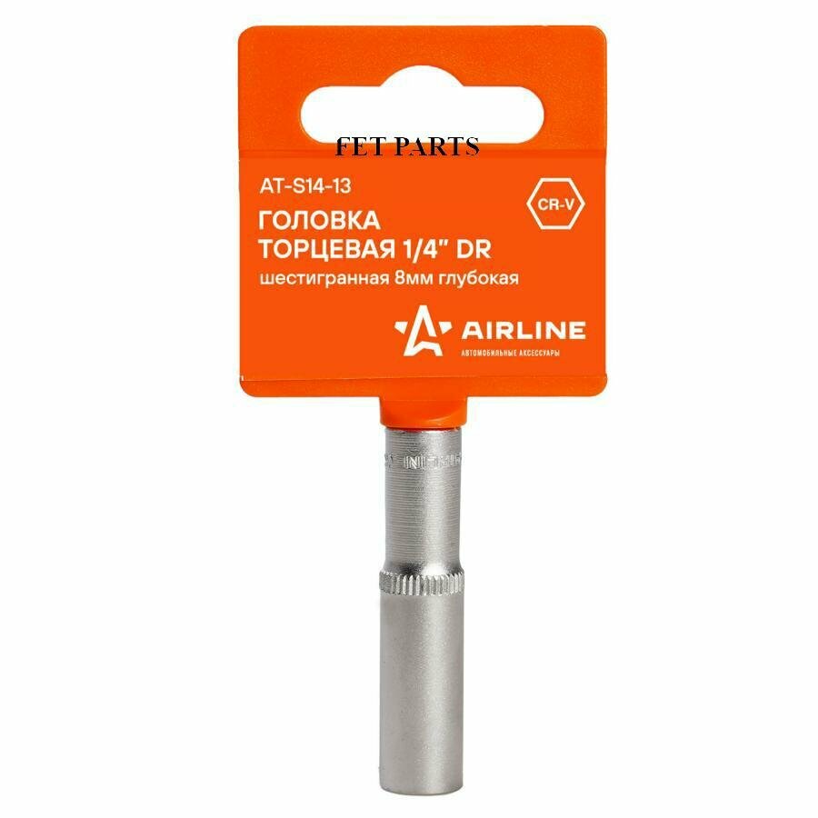 AIRLINE AT-S14-13 Головка торцевая 1/4 DR шестигранная 8мм глубокая пласт. подвес (AT-S14-13) 1шт