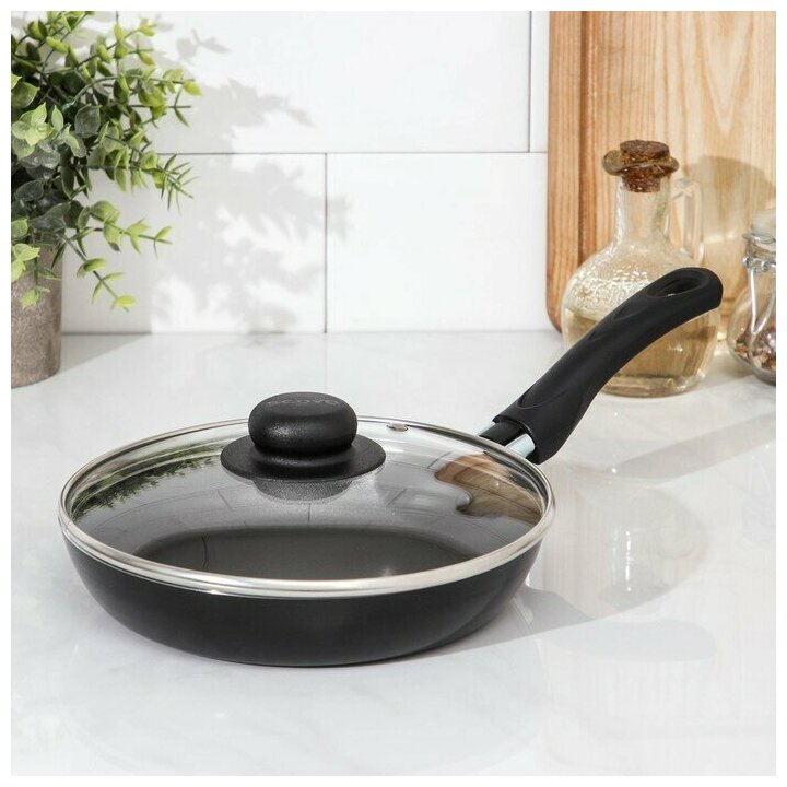 Сковорода Consul, d=20 см, стеклянная крышка, пластиковая ручка, антипригарное покрытие, цвет чёрный, "SCOVO", материал штампованный алюминий интересное: