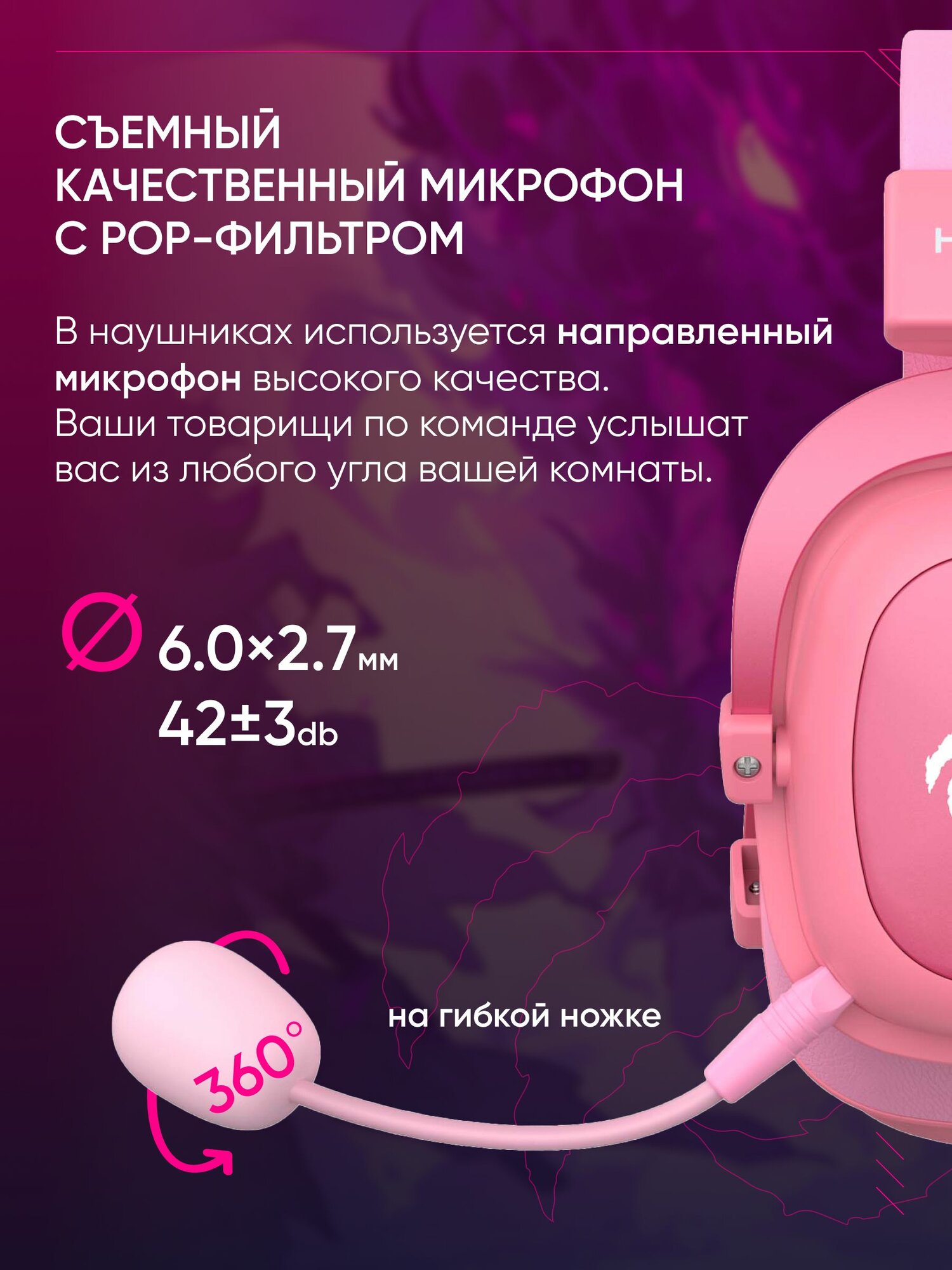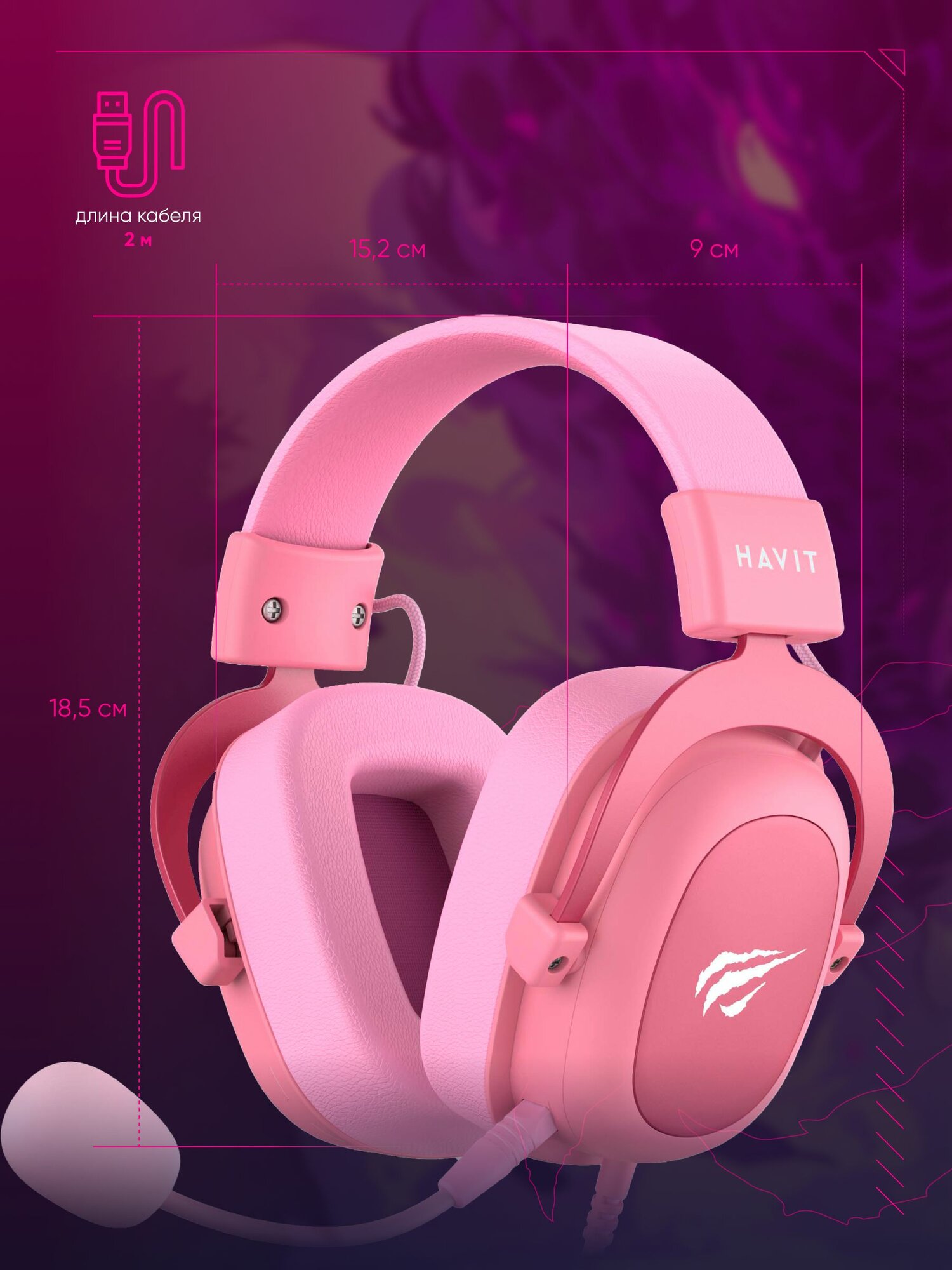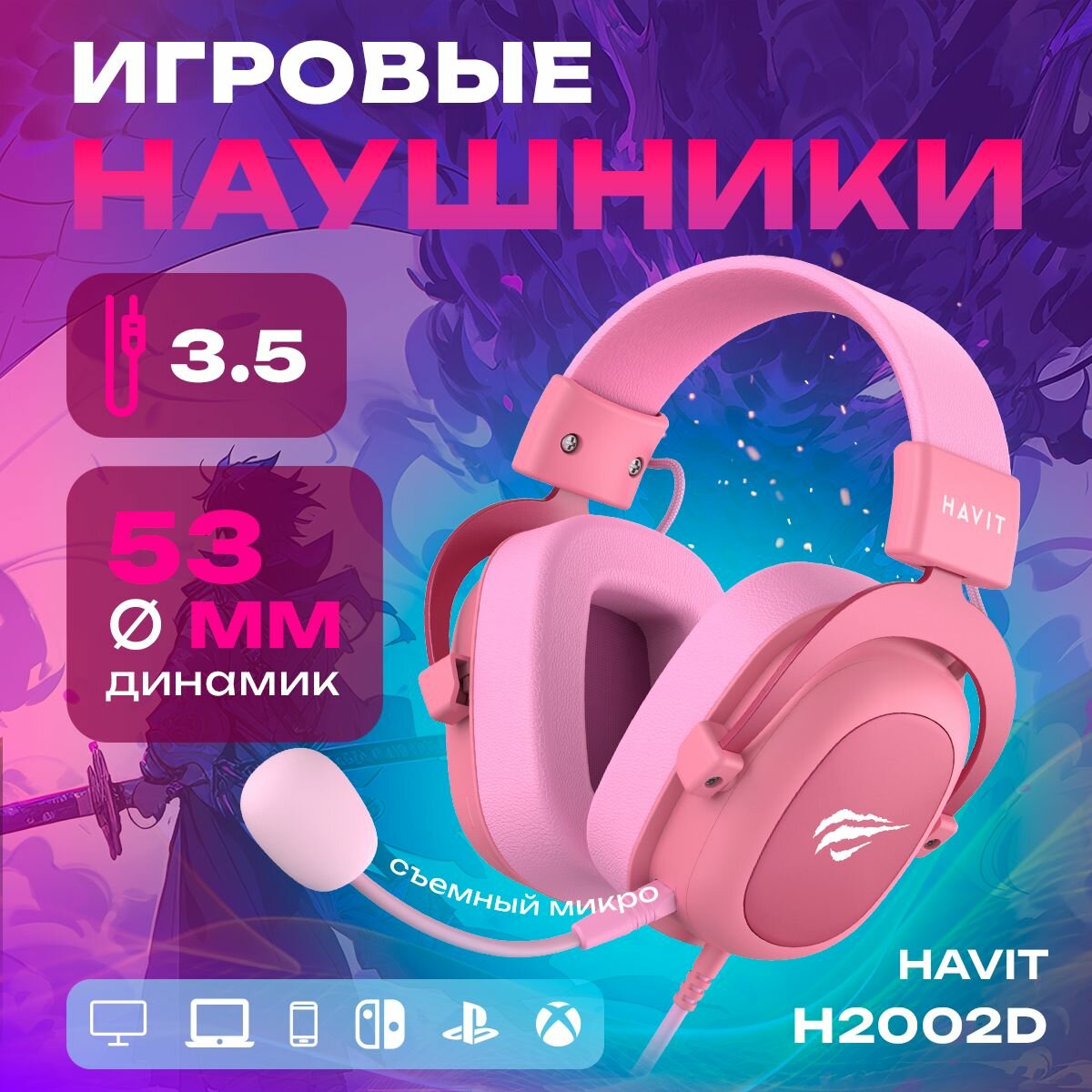Наушники игровые проводные. Геймерская гарнитура с микрофоном для ПК, компьютера, ноутбука Havit H2002d розовый 3.5 jack