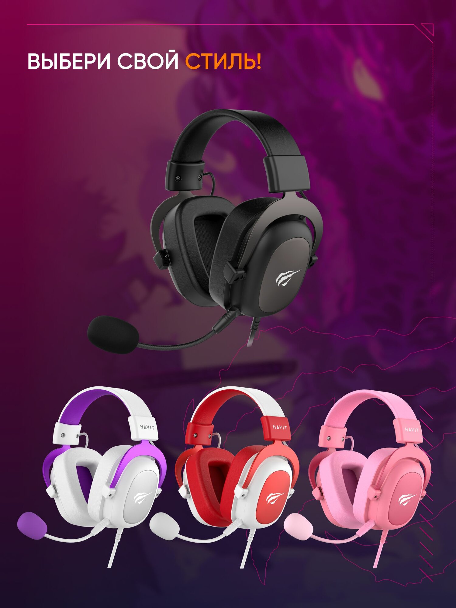 Наушники геймерские, игровые, проводные с микрофоном Havit H2002d белый/фиолетовый 3.5 jack