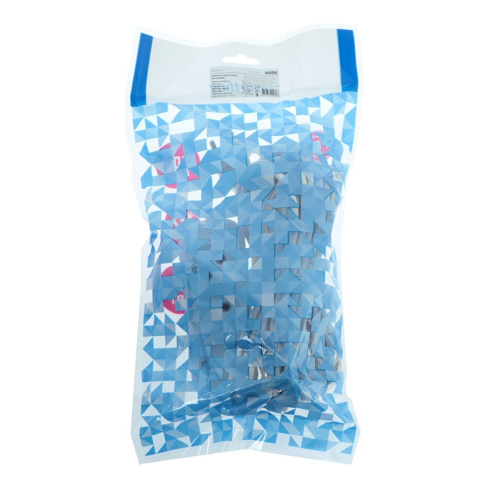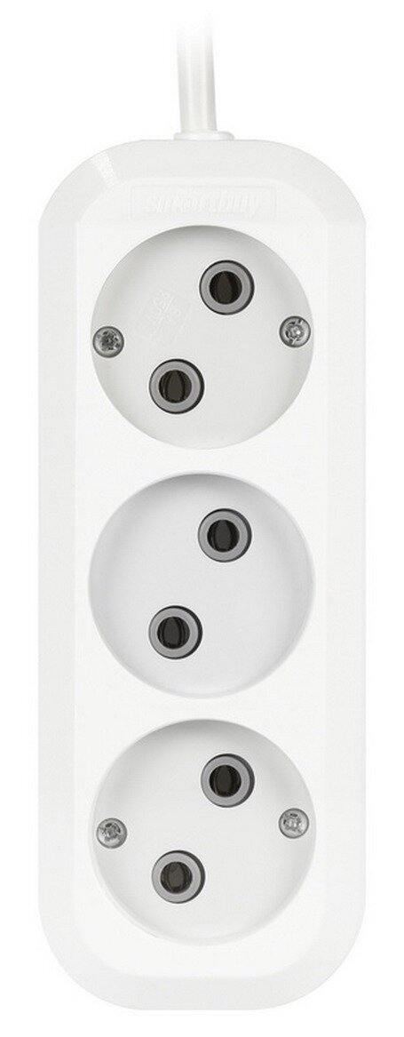 Удлинитель SmartBuy SBE-10-3-02-N/SBE-10-3-03-N/SBE-10-3-05-N, 3 розетки, б/з, 10А / 2200 Вт белый 3 м 3