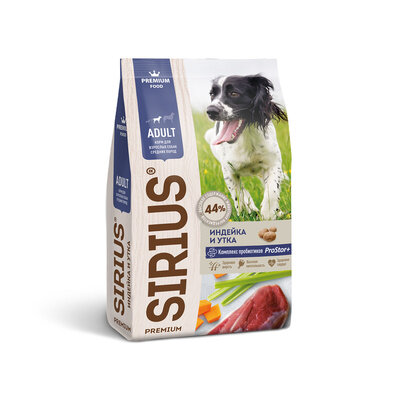 Сухой корм Sirius полнорационный для собак средних пород, с индейкой и уткой с овощами 2 кг