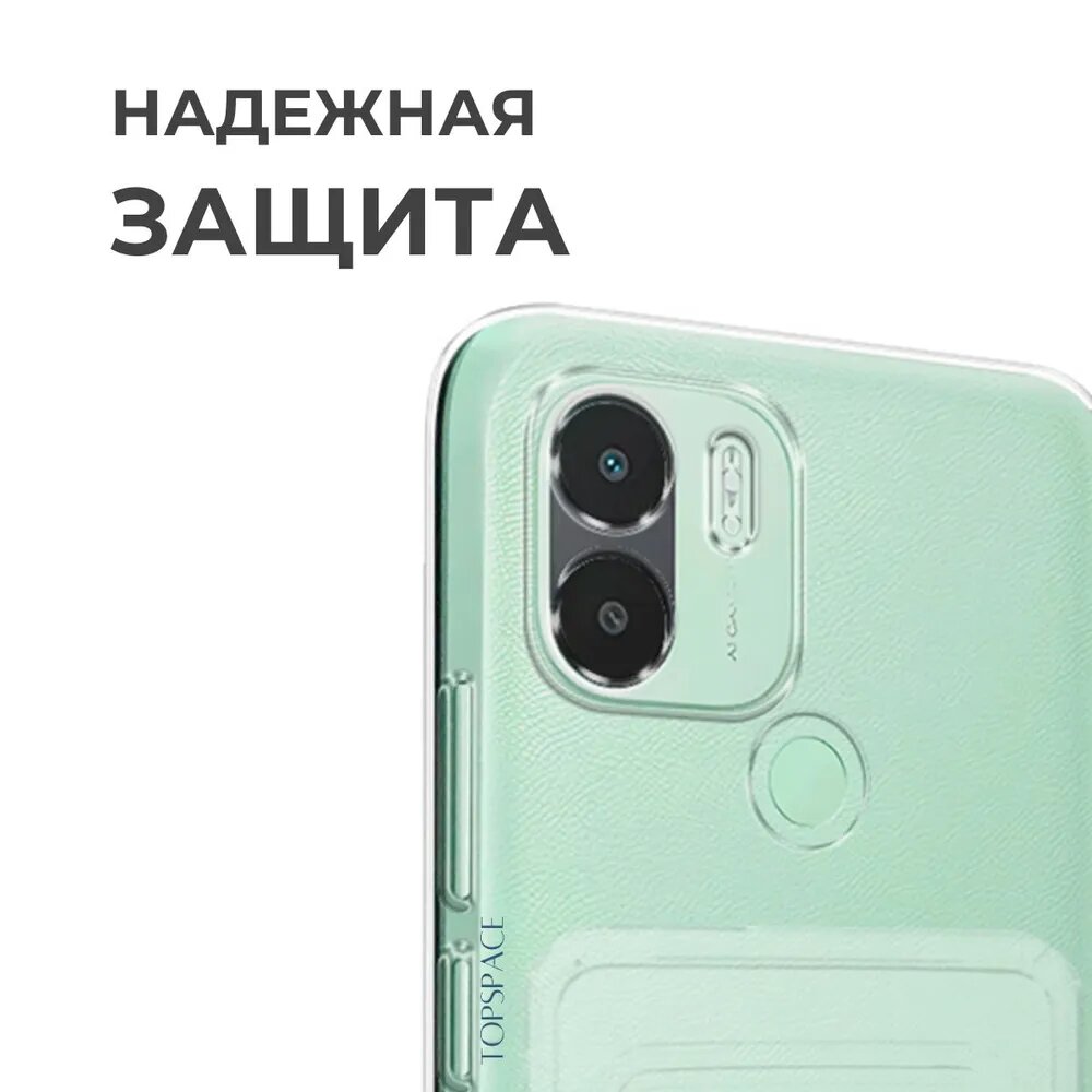 Прозрачный чехол с карманом для карт и защитой камеры для Xiaomi Redmi A1+ / Ксиоми Редми А1+