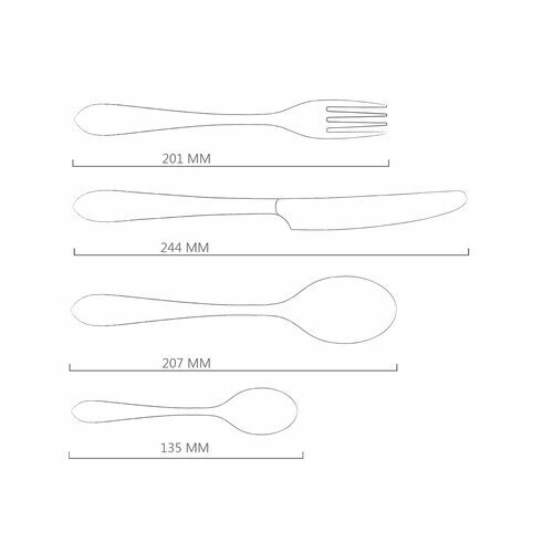 | В набор входит | 6 столовых ножей, 6 столовых вилок, 6 столовых ложек, 6 чайных ложек |