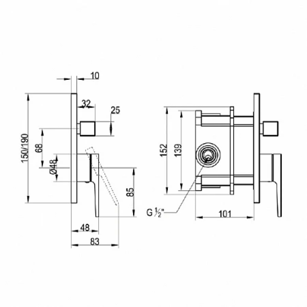 Смеситель для душа встраиваемый на 2 выхода Villeroy & Boch Subway 2.0 однорычажный TVS10235300061